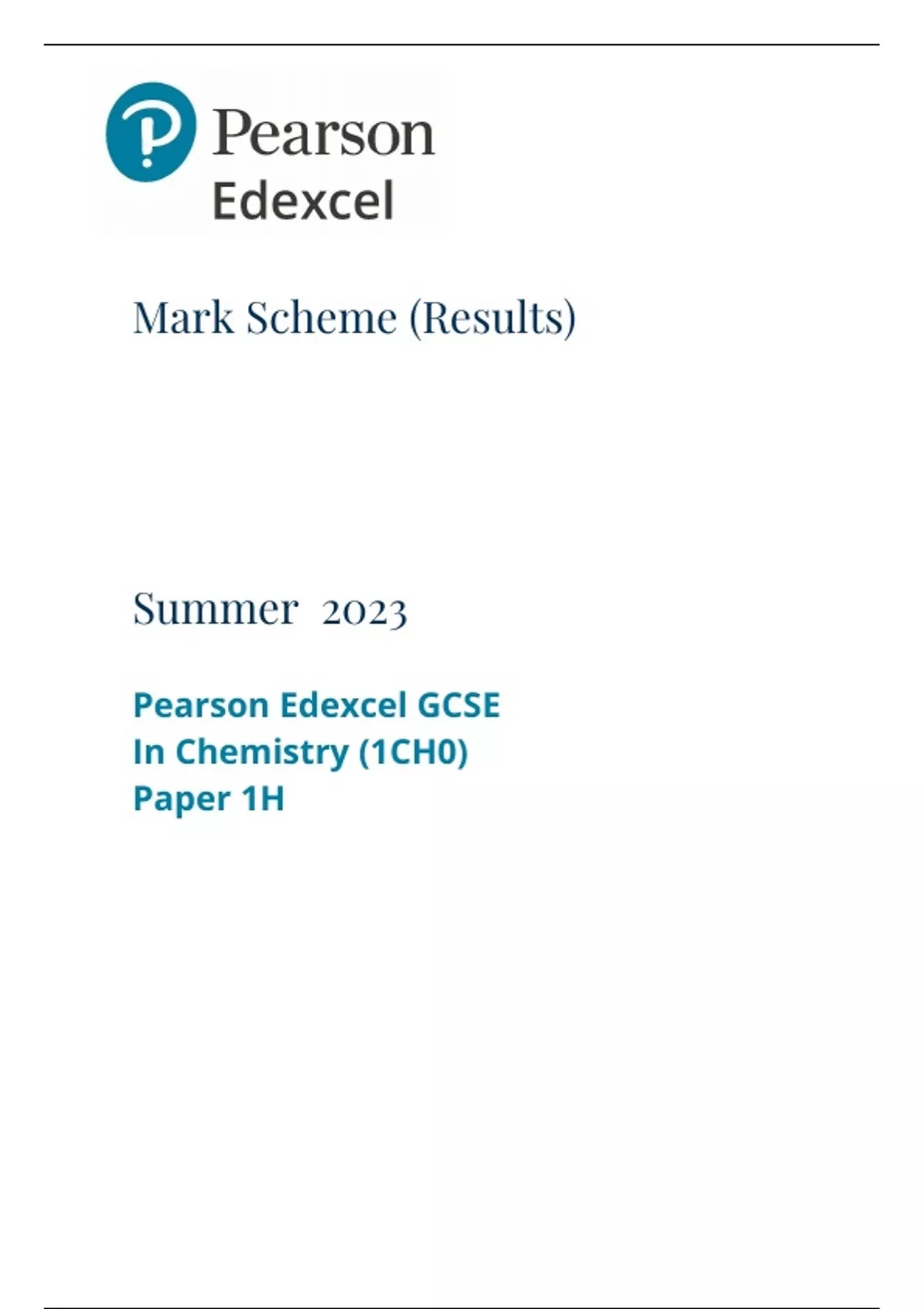 Edexcel gcse triple science chemistry paper 1 june 2023 mark scheme