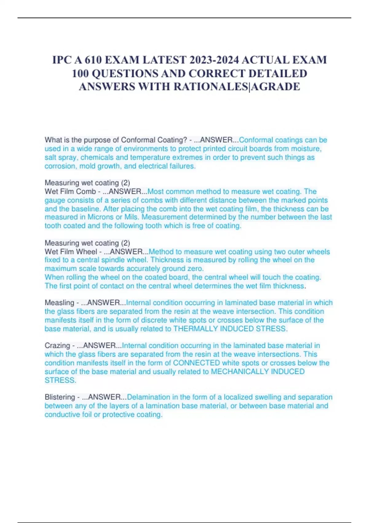IPC A 610 EXAM LATEST ACTUAL EXAM 100 QUESTIONS AND CORRECT DETAILED ANSWERS WITH RATIONALES|AGRADE