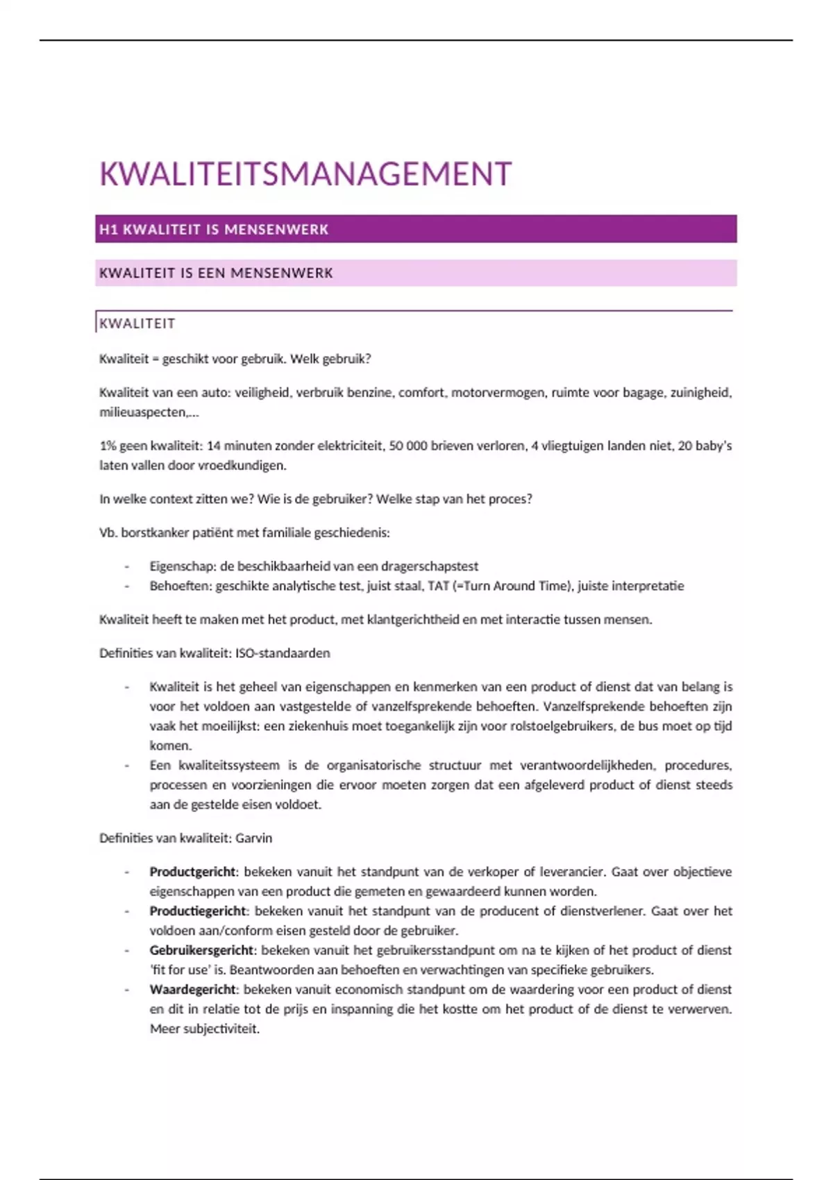 niet alleen de verantwoordelijkheid is van de kwaliteitsafdeling, maar van alle leden van een organisatie. Hij