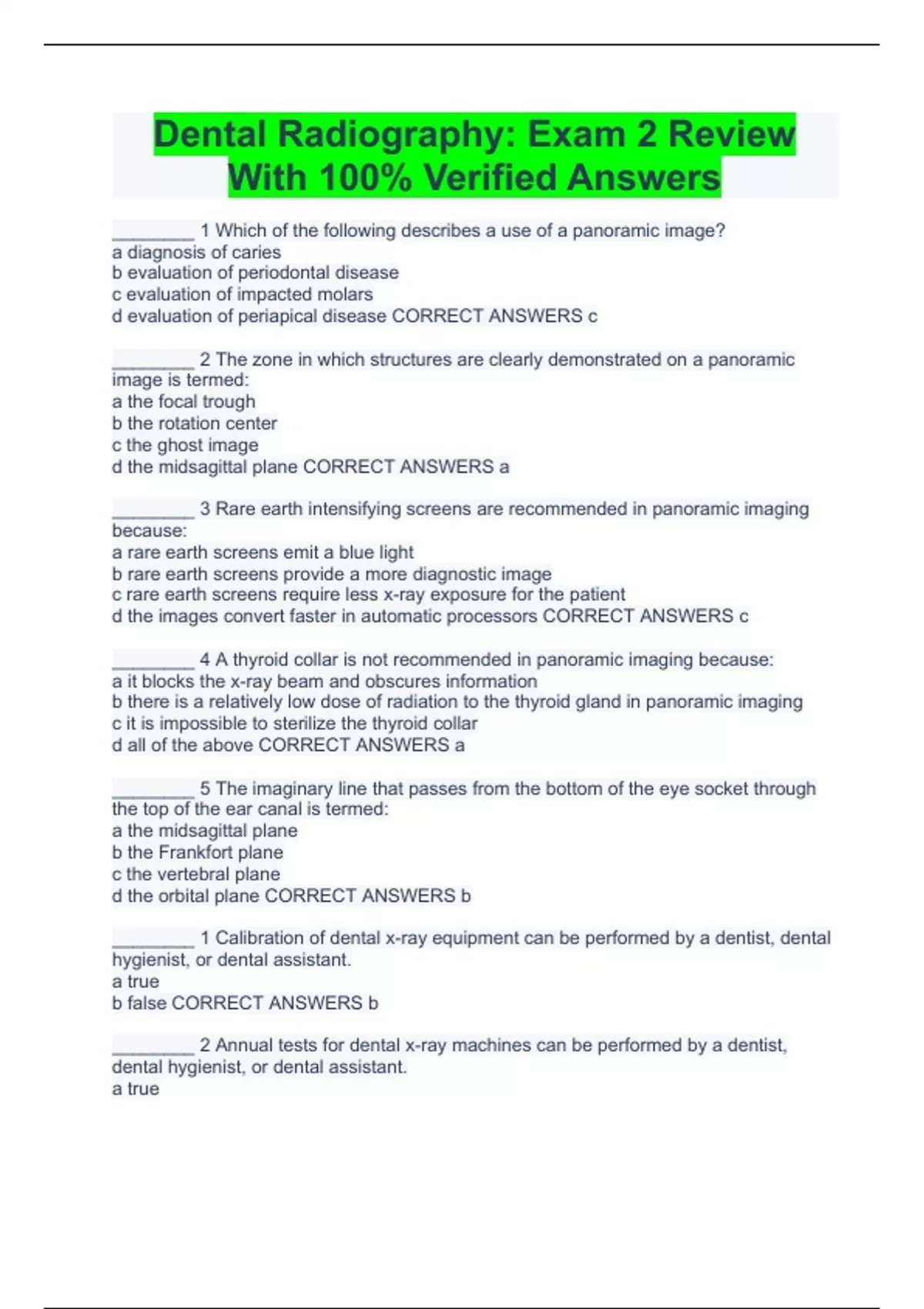 dental radiography exam 2 review with 100 verifi