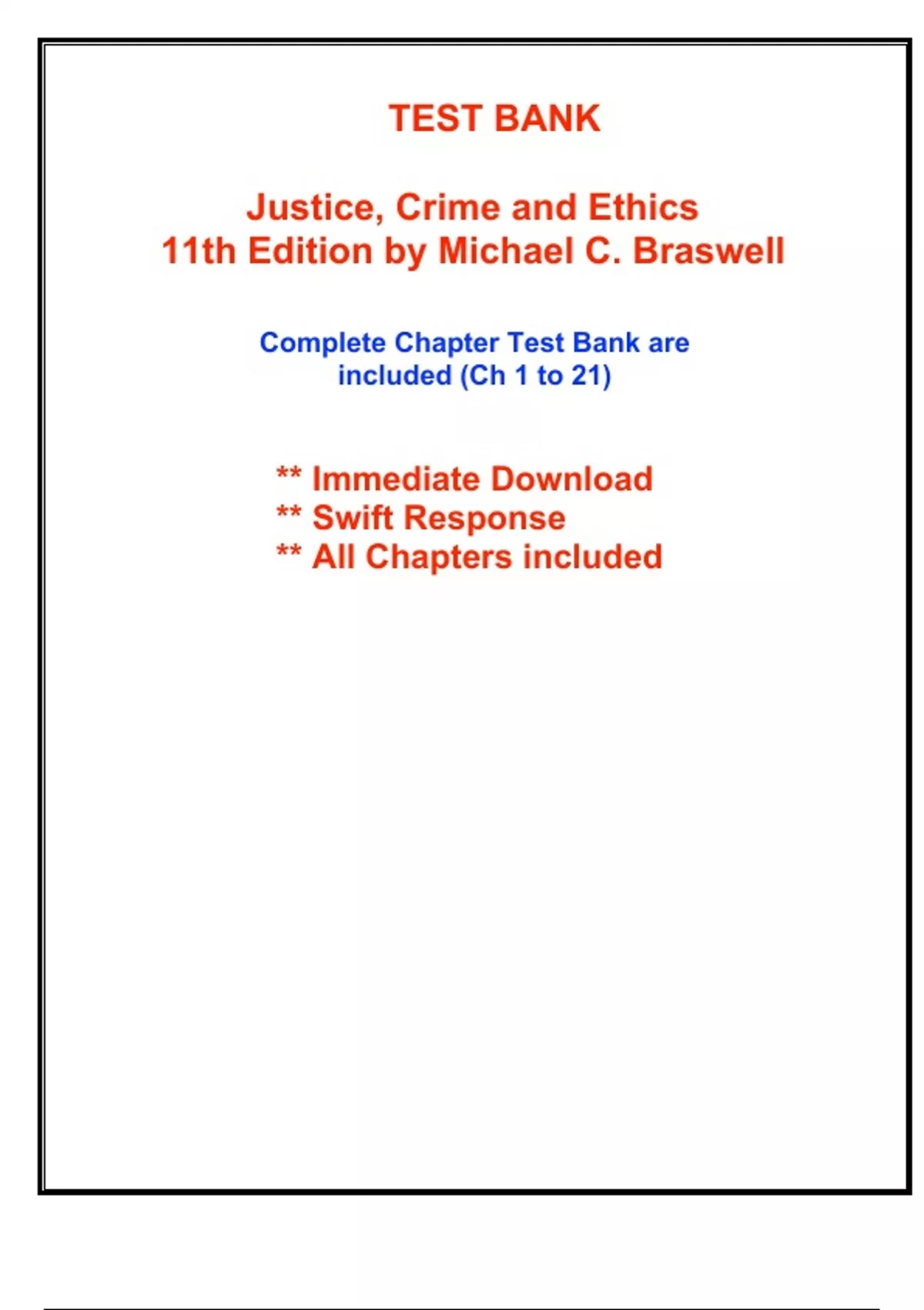Test Bank for Justice, Crime and Ethics, 11th Edition Braswell (All Chapters included)