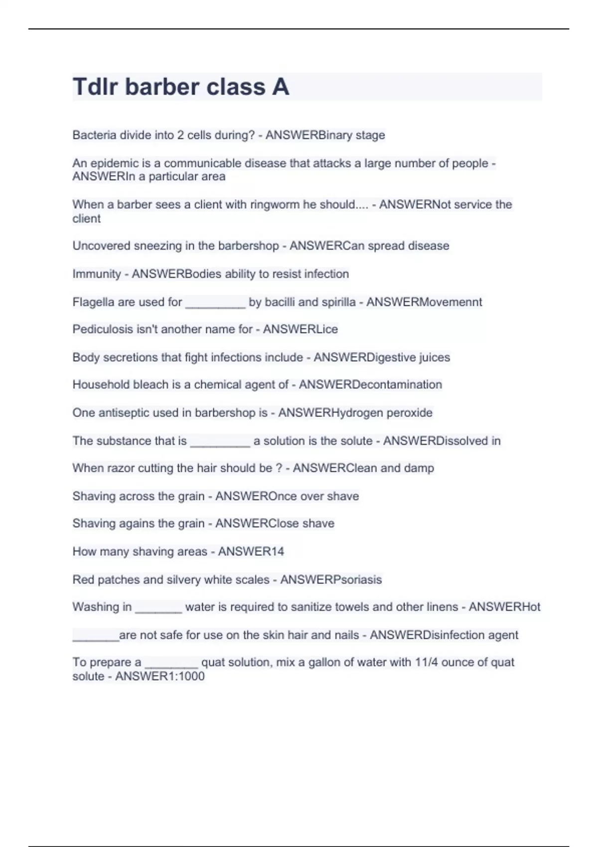 Tdlr barber class A.Questions and answers 2023