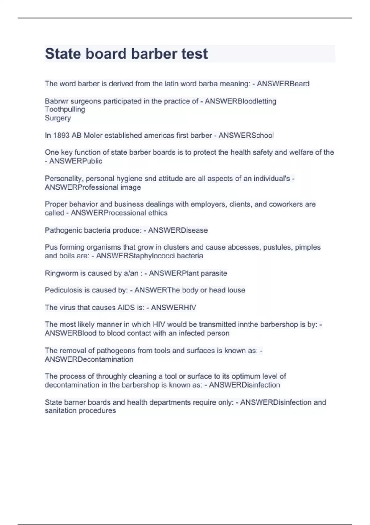 State board barber test.Practice with questions and answers all correct