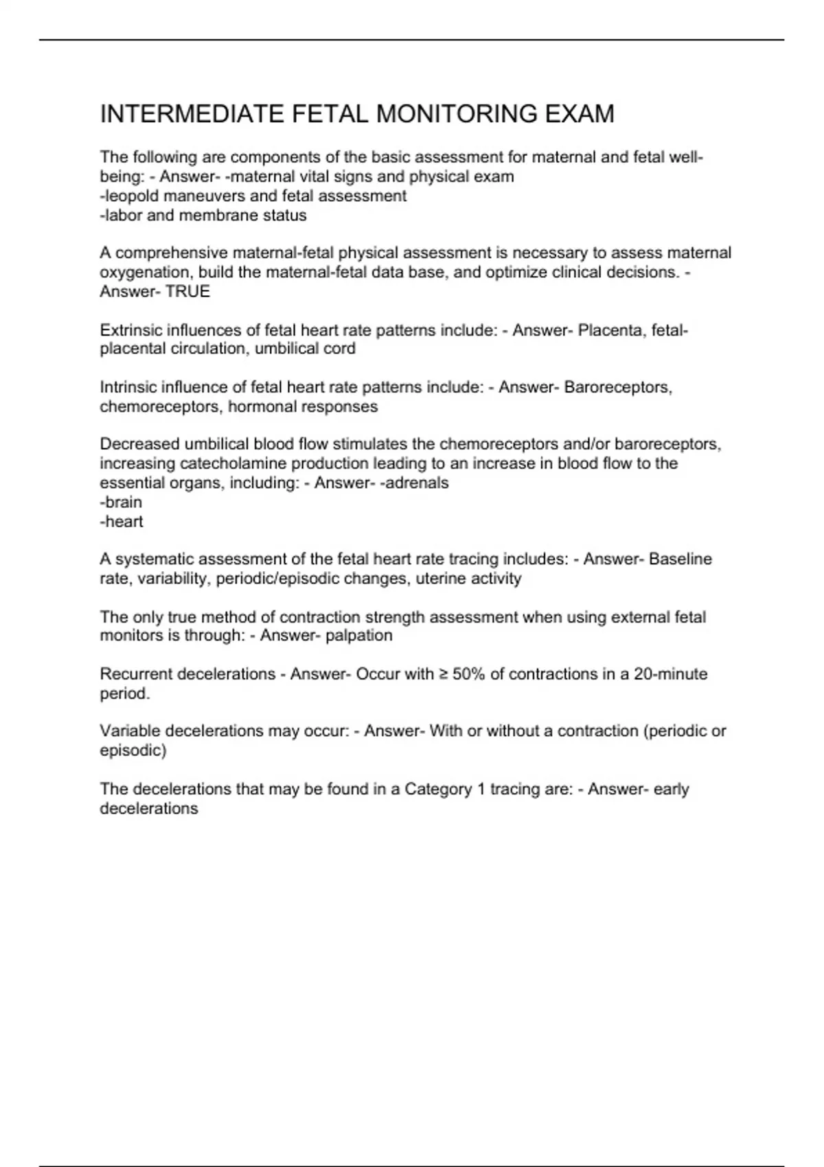 Intermediate Fetal Monitoring Exam