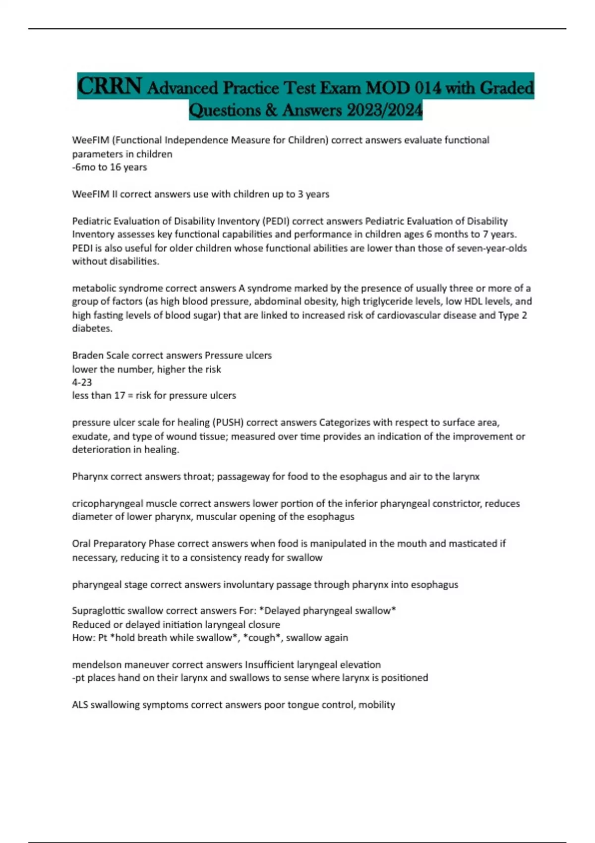Pediatric Evaluation of Disability Inventory (PEDI) correct answers Pediatric Evaluation of Disability