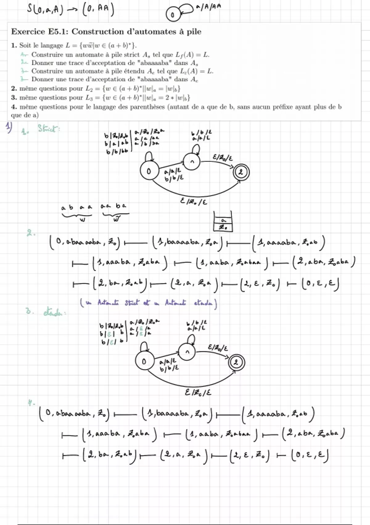 Résumé TD5 Analyse syntaxique automate à pile corrige