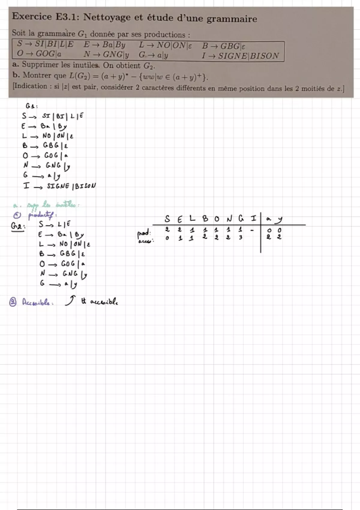 TD3 Analyse syntaxique Nettoyage de grammaire, FNC, Algo de cocke corrige