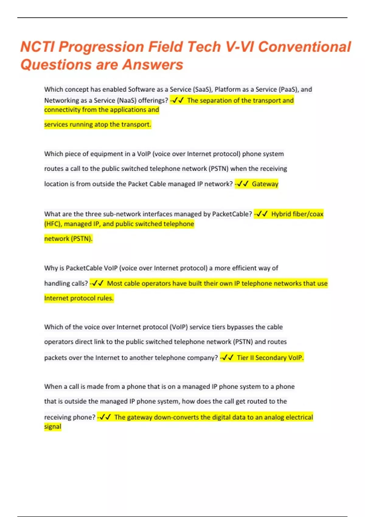 NCTI Progression: Field Tech V - VI Conventional Questions and Answers Rated A+