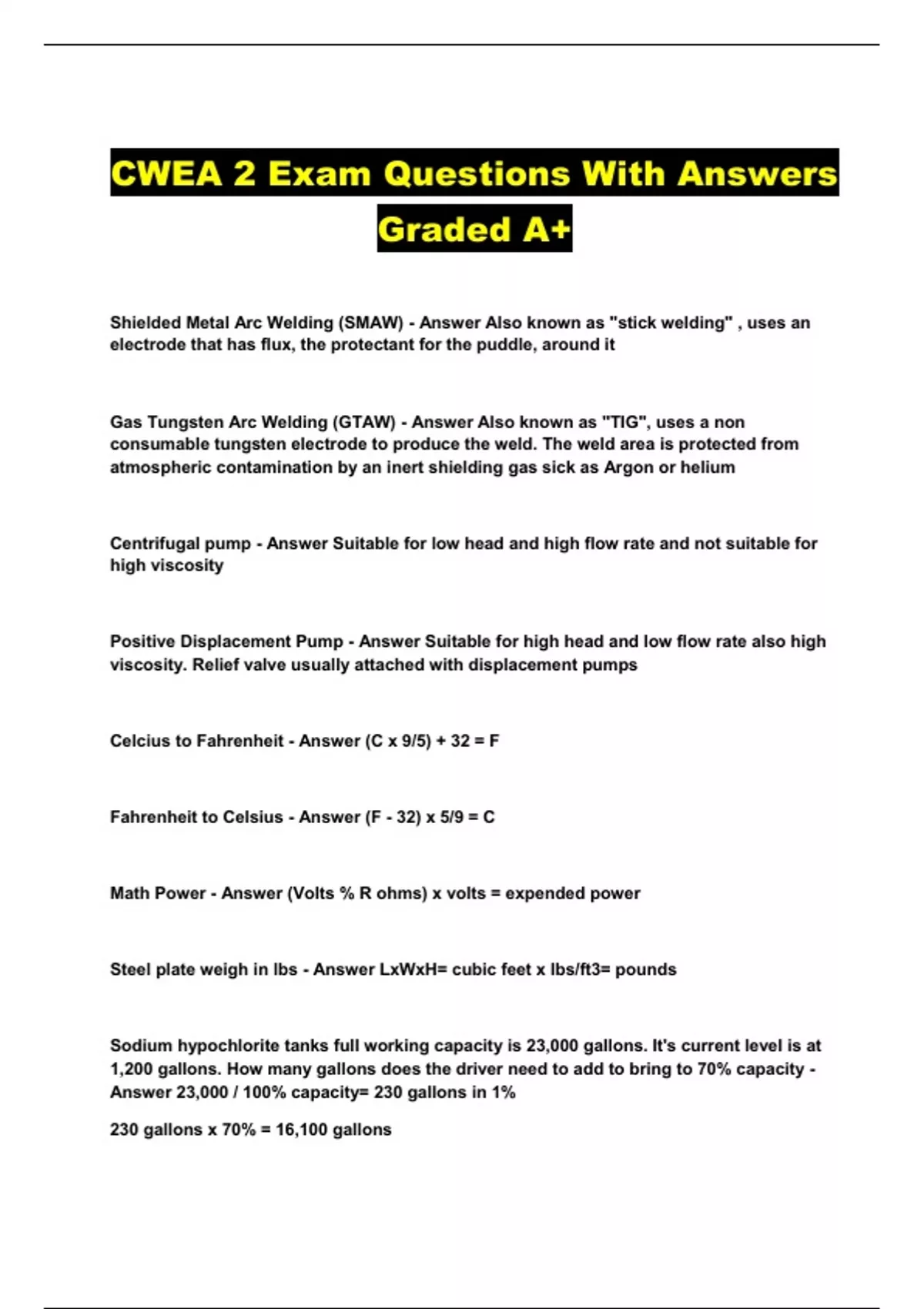 CWEA Packaged Exams With Complete Questions And Answers Graded A+