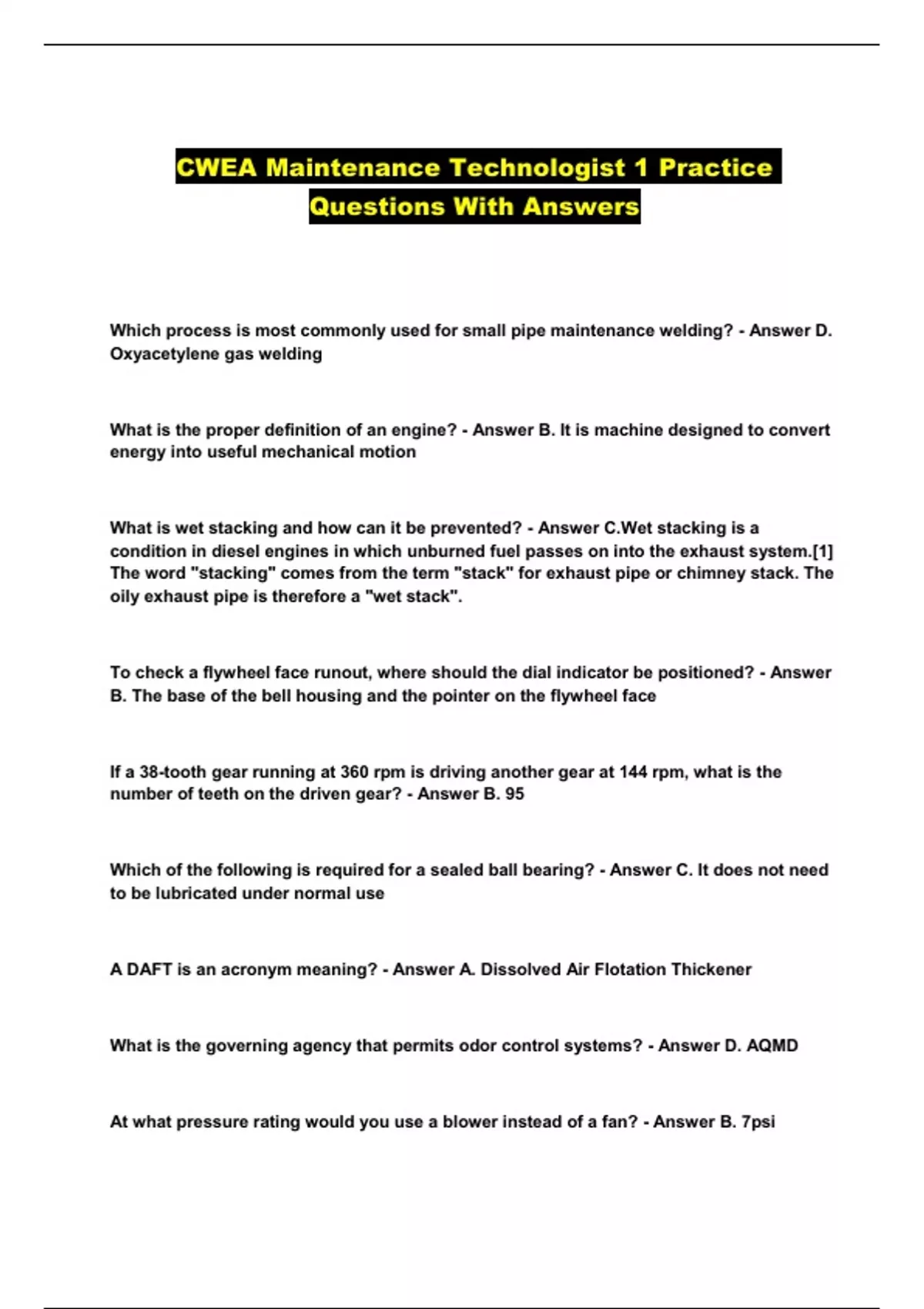 CWEA Maintenance Technologist 1 Practice Questions With Answers...