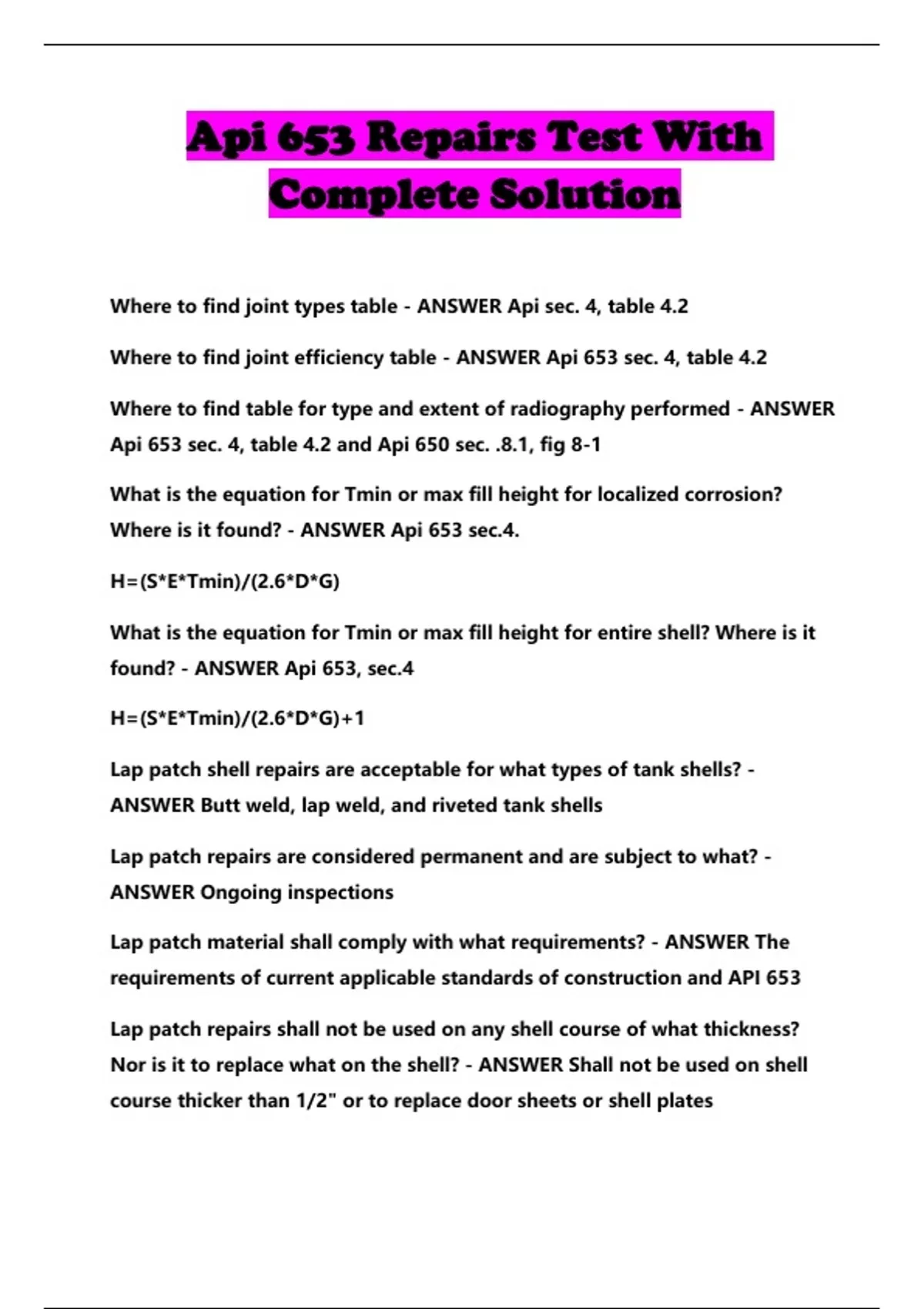 API 653 BUNDLED EXAMS WITH SOLUTION