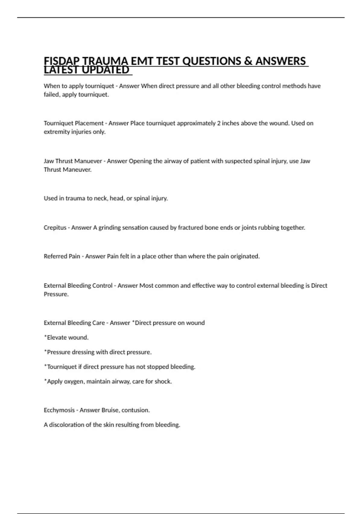 FISDAP TRAUMA EMT TEST QUESTIONS & ANSWERS LATEST UPDATED