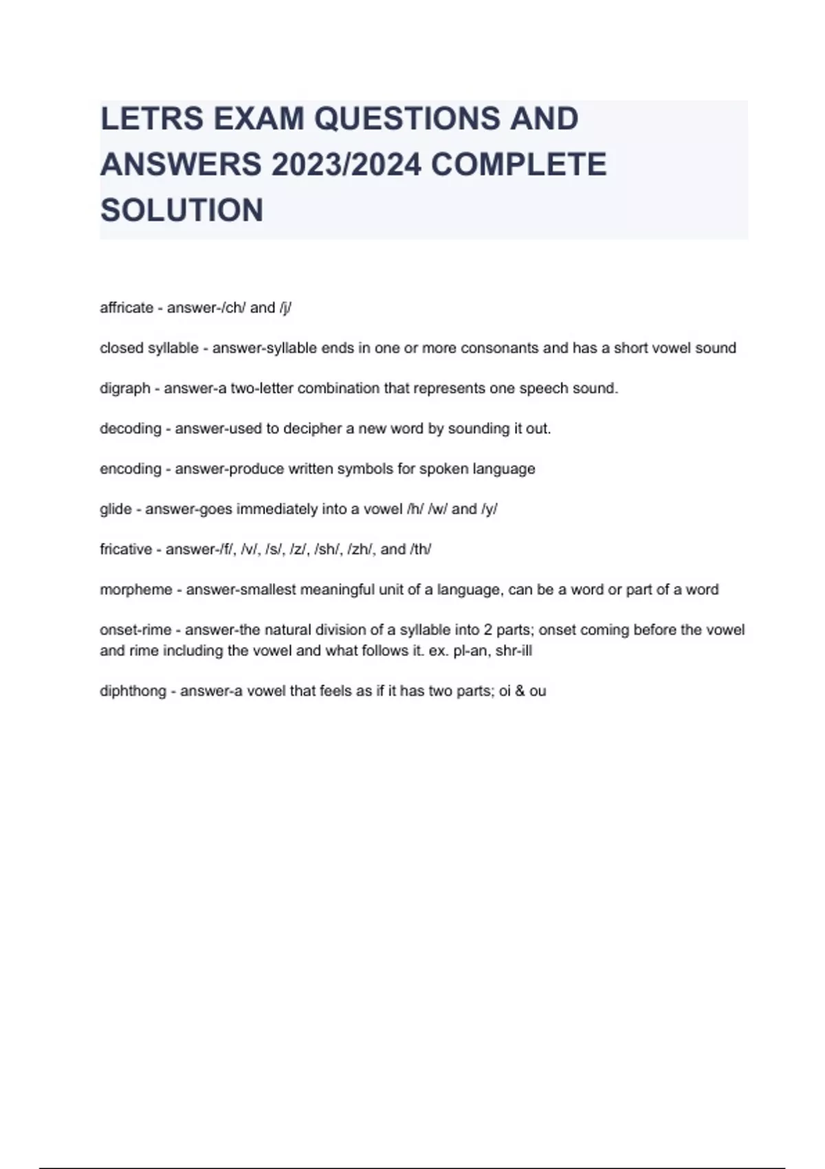 LETRS EXAM QUESTIONS AND ANSWERS 2023/2024 COMPLETE SOLUTION