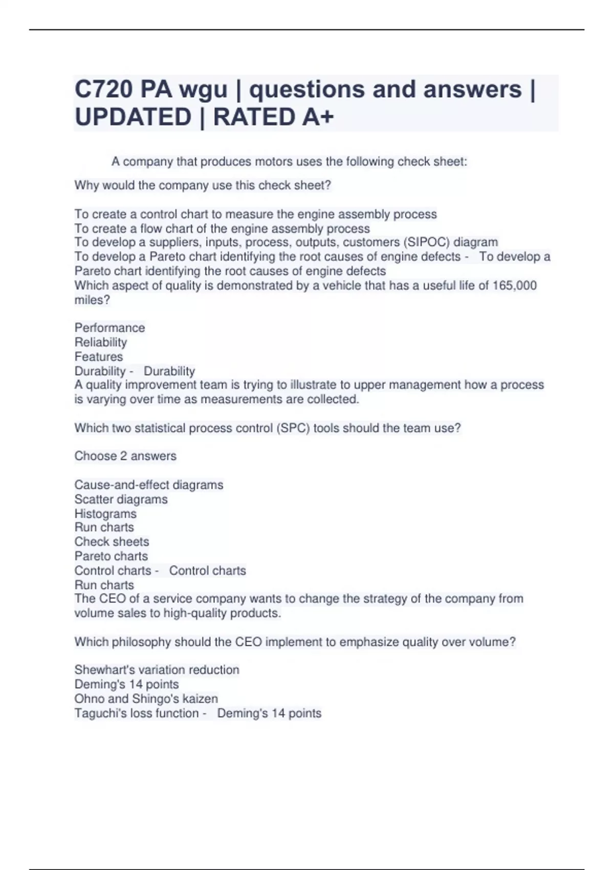 C720 PA wgu | questions and answers | UPDATED | RATED A+