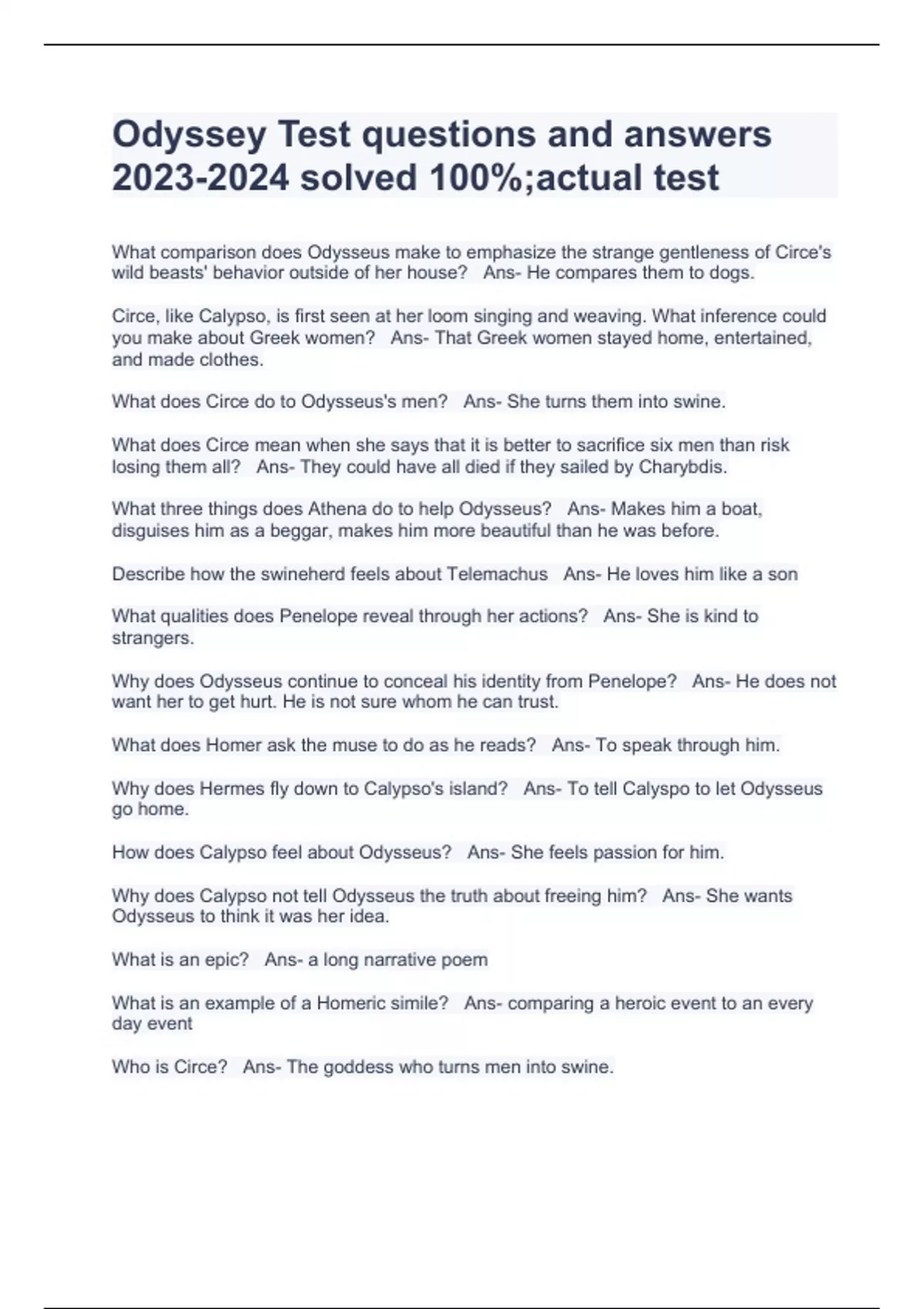 Odyssey Test questions and answers solved 100%;actual test