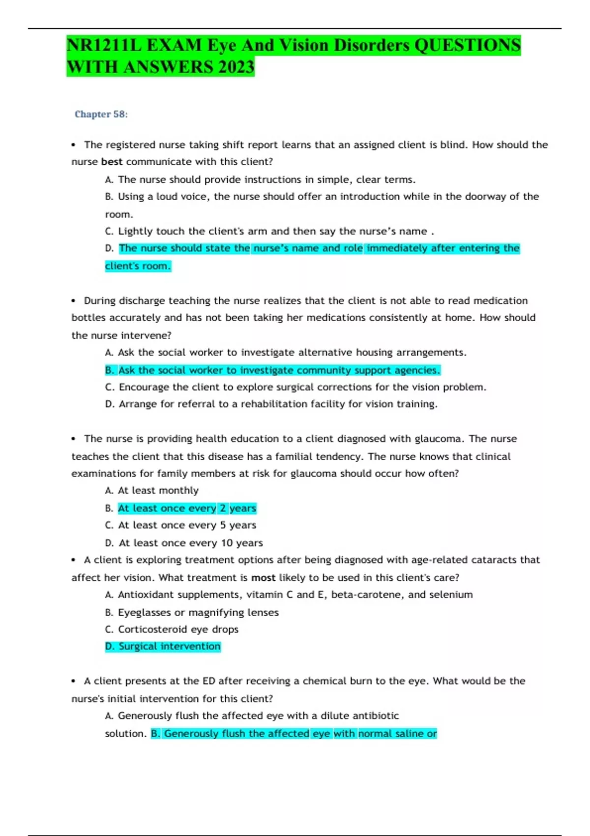 NR1211L EXAM Eye And Vision Disorders QUESTIONS WITH ANSWERS 2023