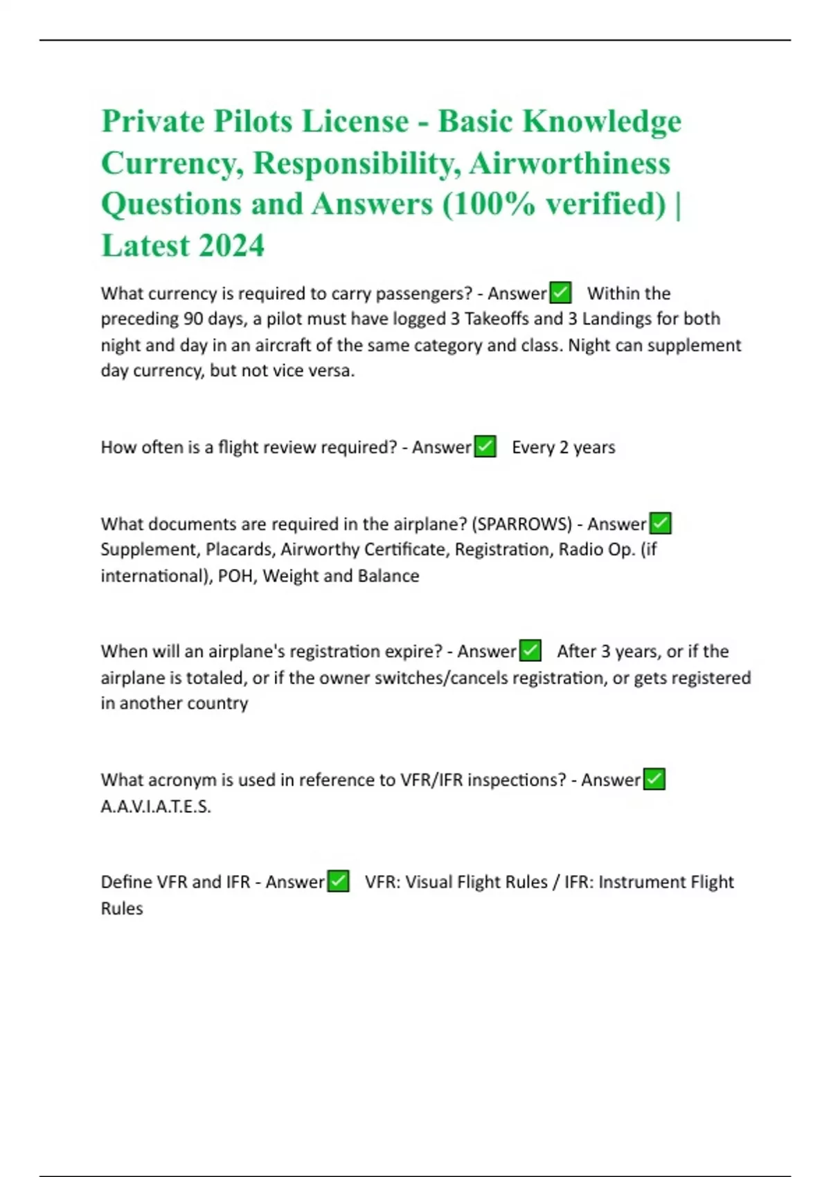 Private Pilots License - Basic Knowledge Currency, Responsibility, Airworthiness Questions and Answers (100% verified) | Latest 2024