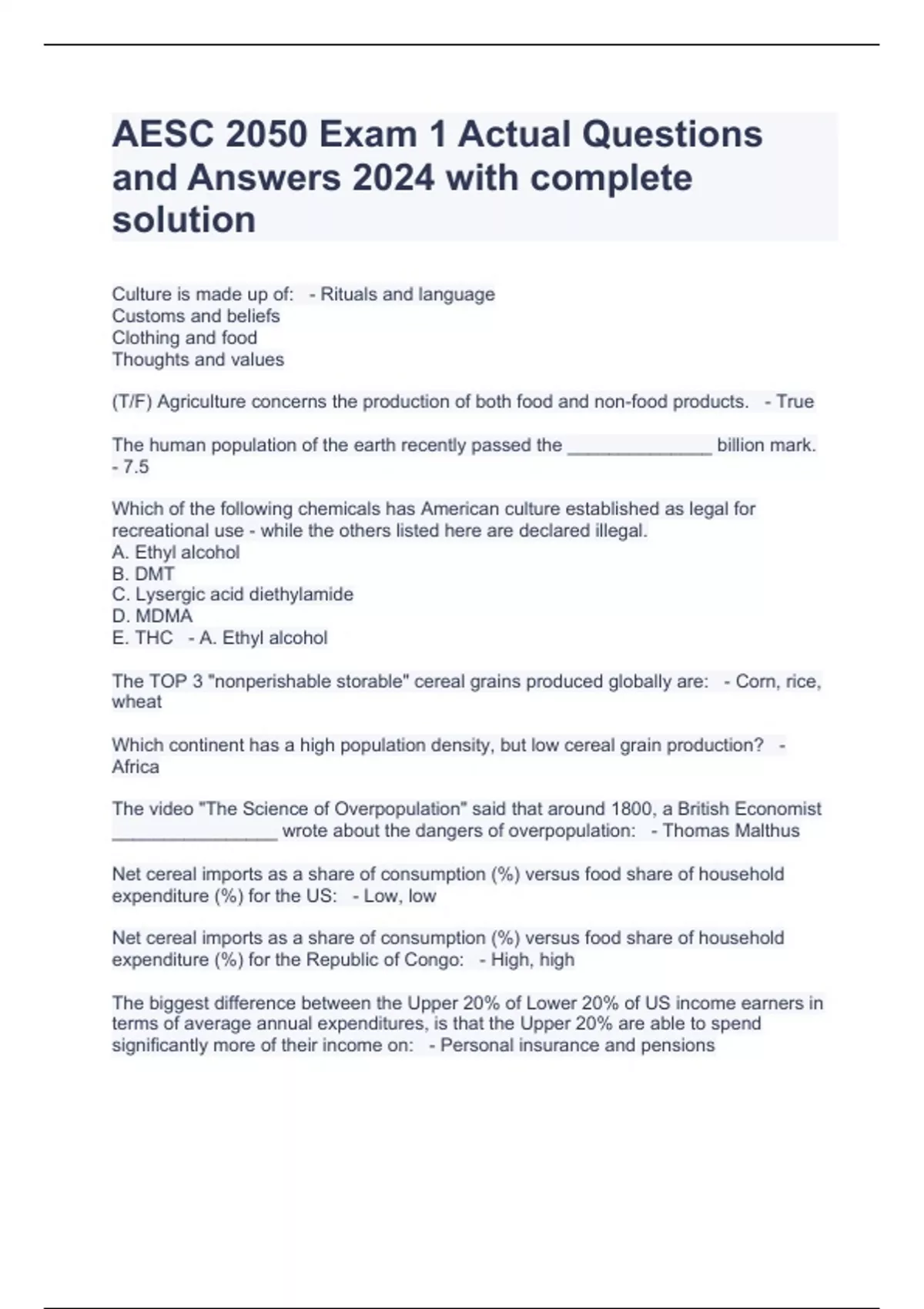 AESC 2050 Exam 1 Actual Questions and Answers 2024 with complete solution