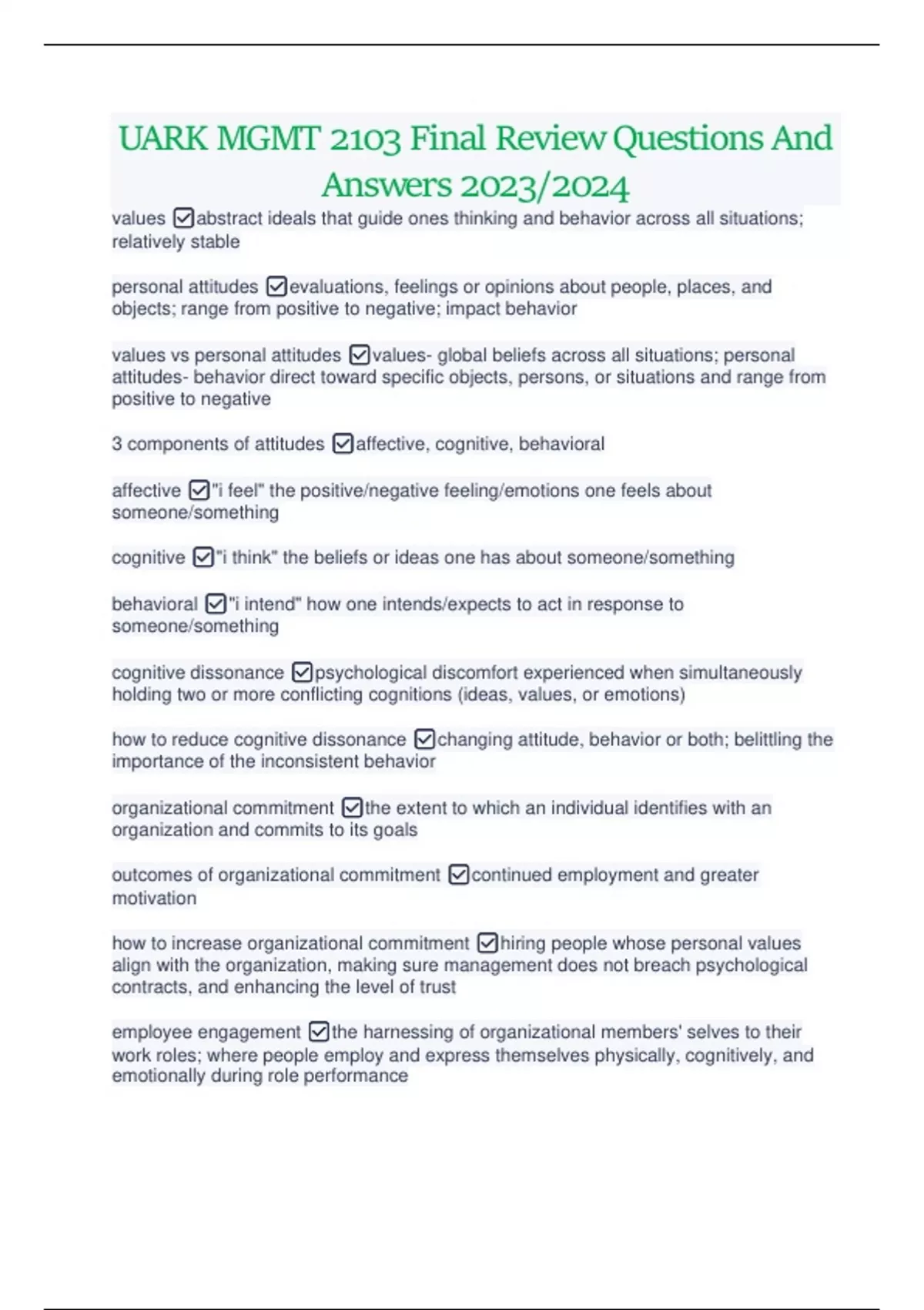 UARK MGMT 2103 Final Review Questions And Answers 2023/2024