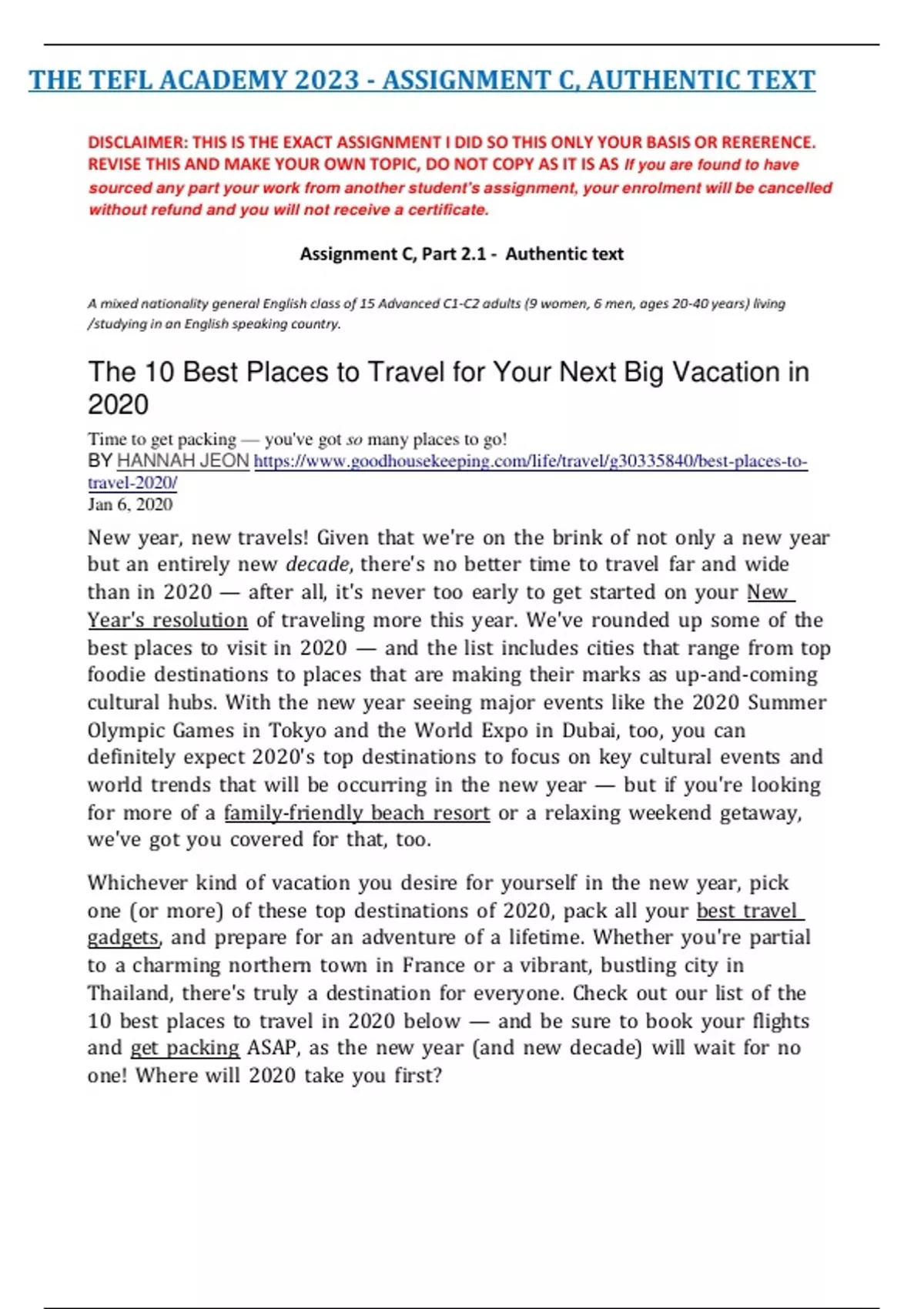 THE TEFL ACADEMY 2023 - ASSIGNMENT C, AUTHENTIC TEXT.