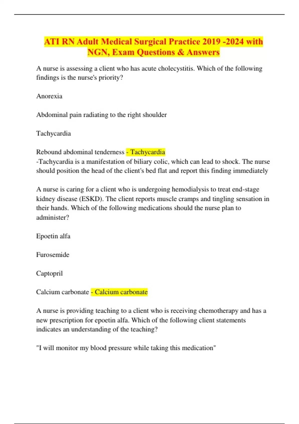 new prescription for epoetin alfa. Which of the following client statements