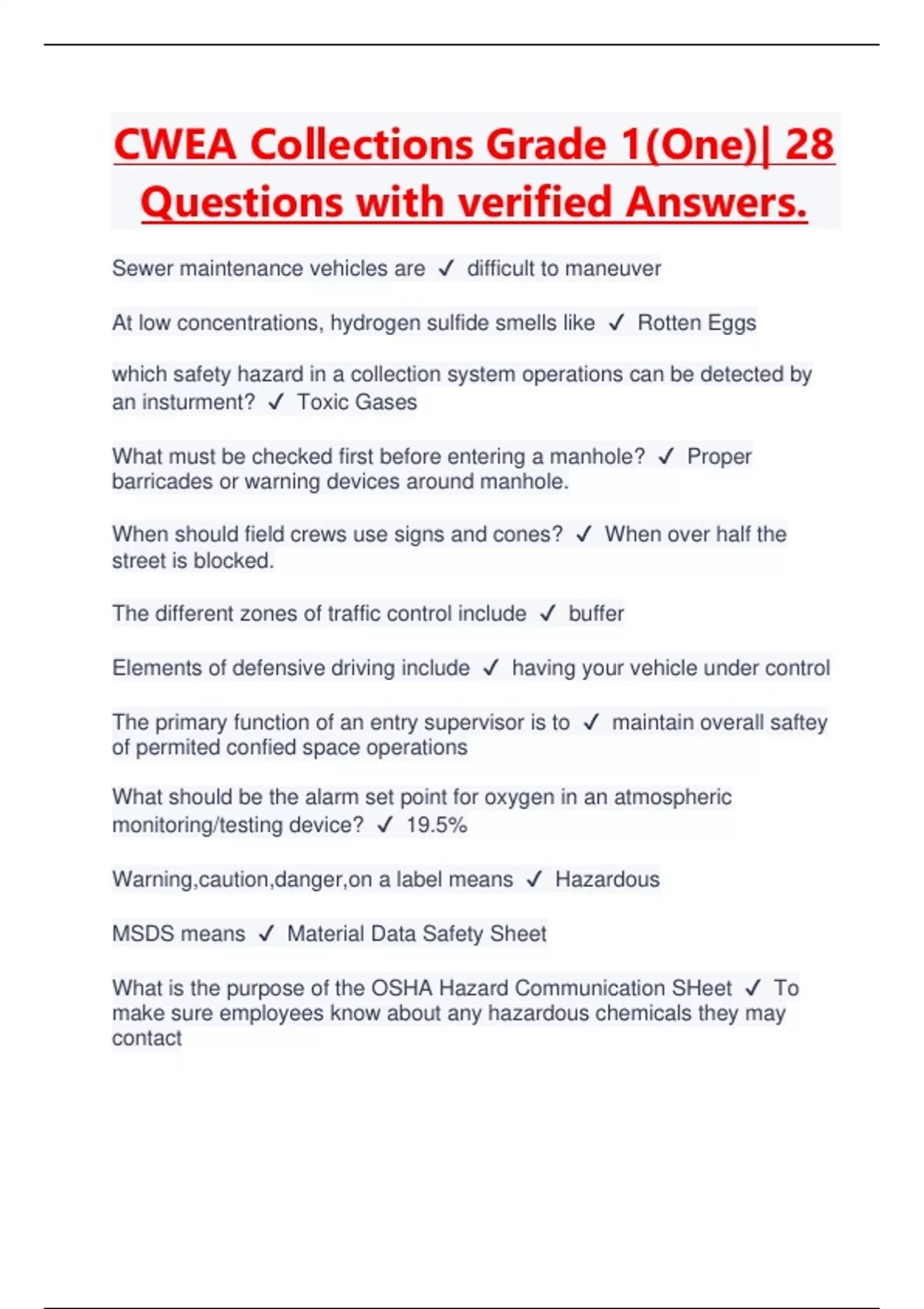 CWEA Collections Grade 1(One)| 28 Questions with verified Answers | Latest 2023/2024