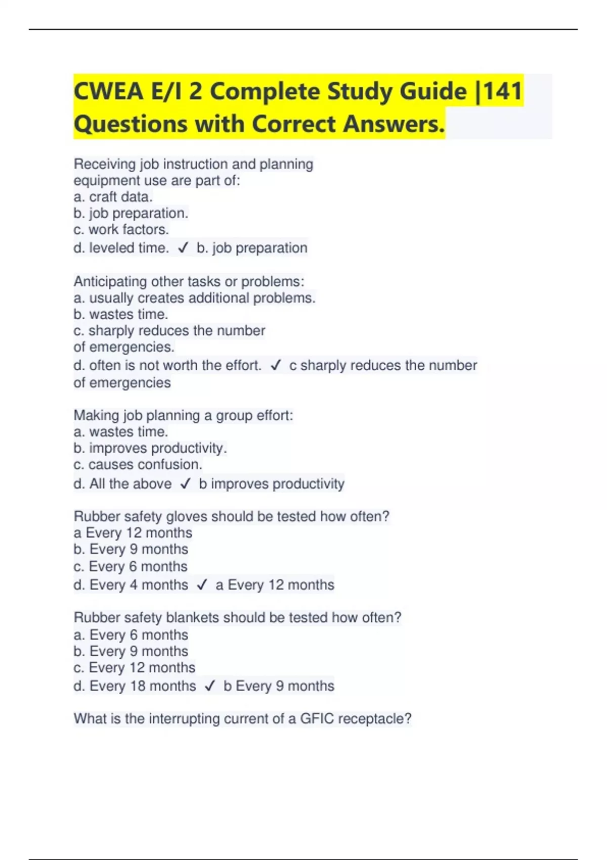 CWEA E/I 2 Complete Study Guide |141 Questions with Correct Answers | Latest 2023/2024