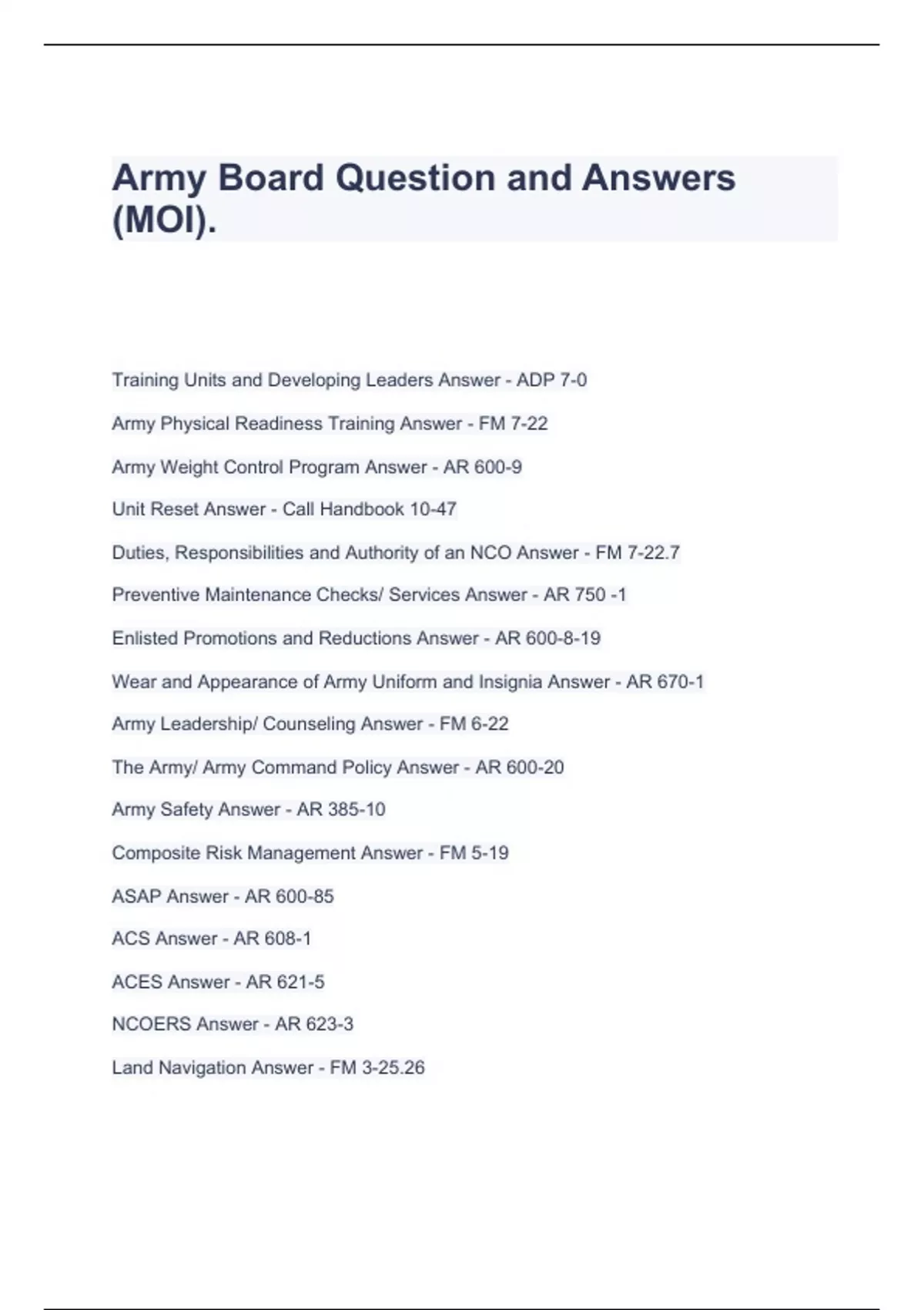 Army Board Question and Answers (MOI).