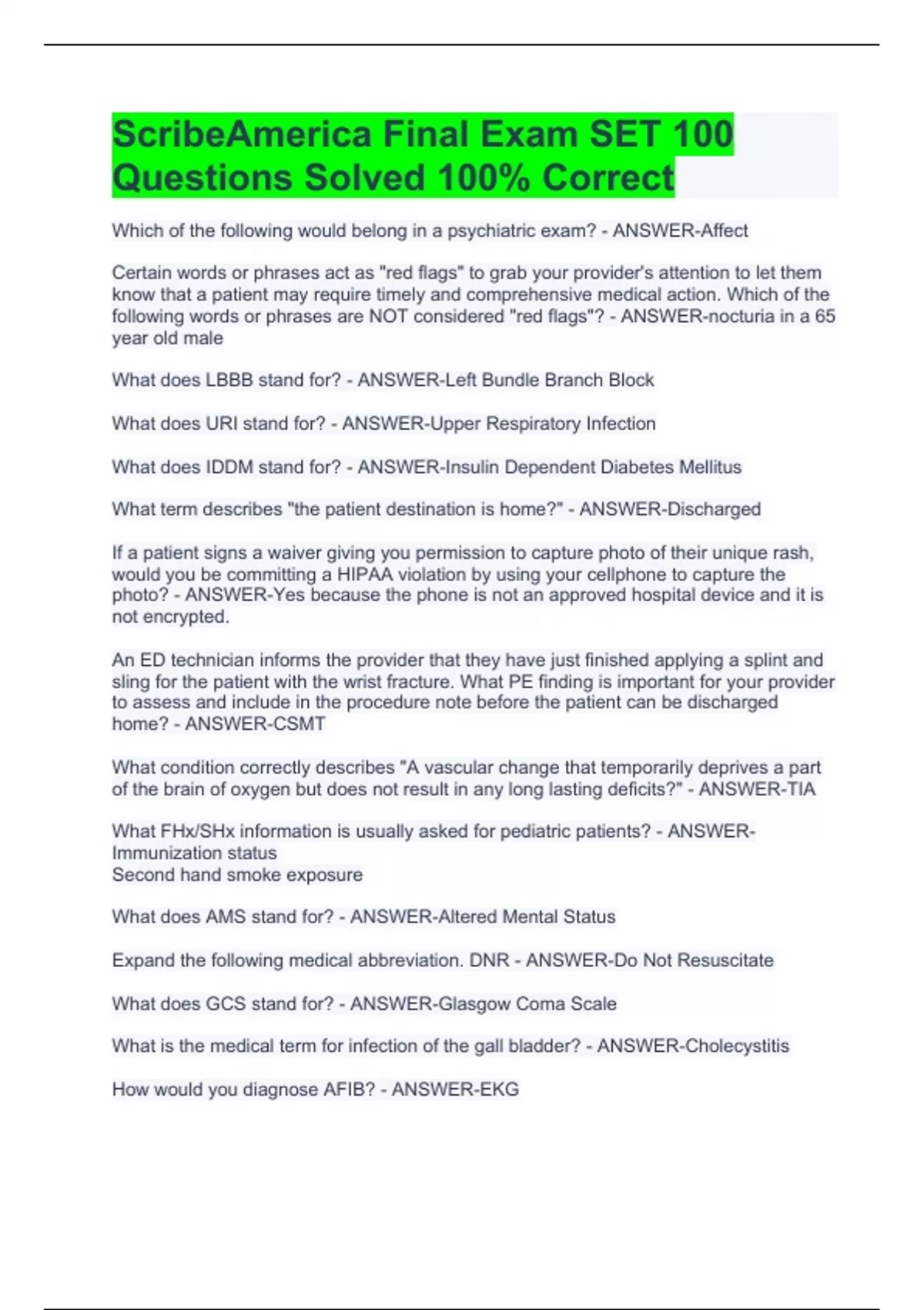 ScribeAmerica Final Exam SET 100 Questions Solved 100% Correct