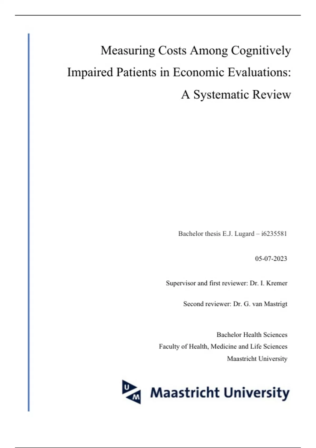 Bachelorscriptie / Bachelorthesis Measuring Costs Among Cognitively Impaired Patients in Economic Evaluations / Het meten van kosten in economische evaluatiestudies