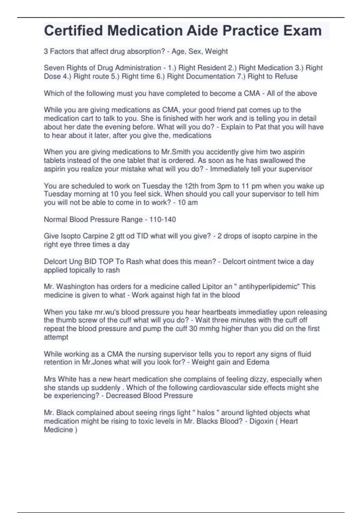 Certified Medication Aide Practice Exam