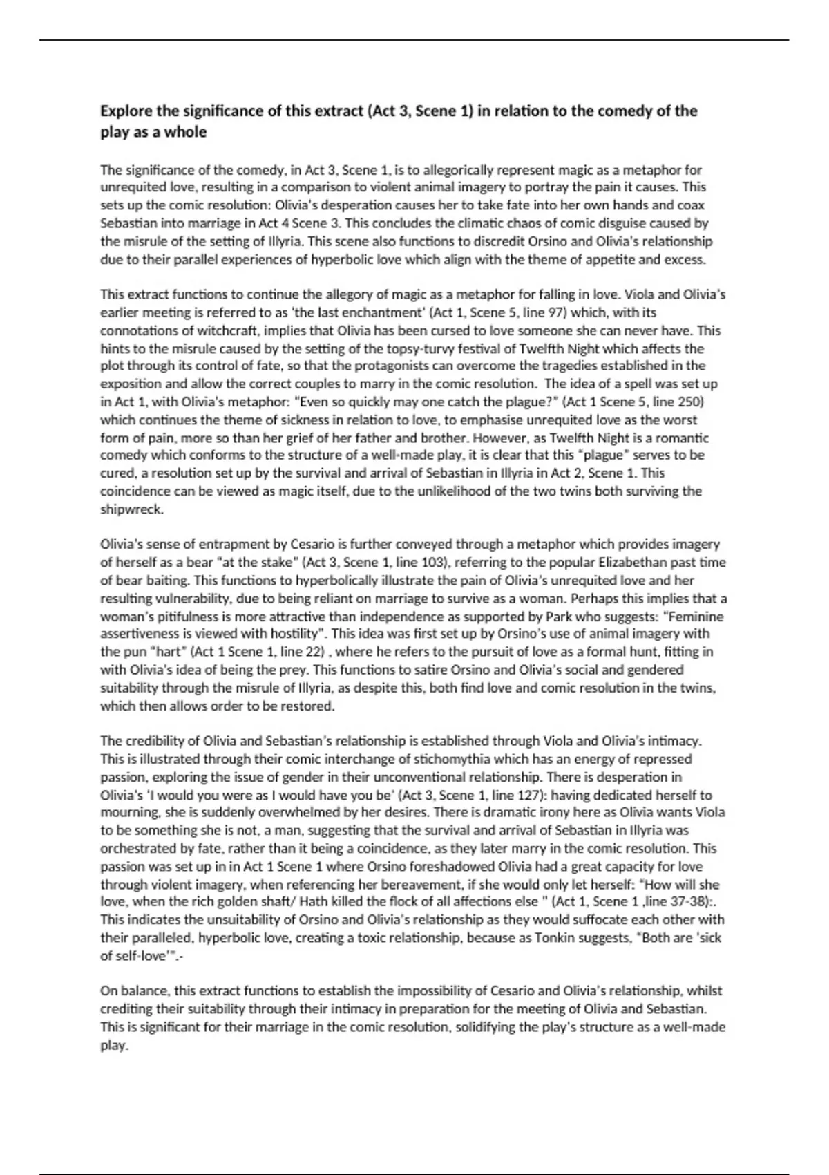 On balance, this extract functions to establish the impossibility of Cesario and Olivia’s relationship, whilst