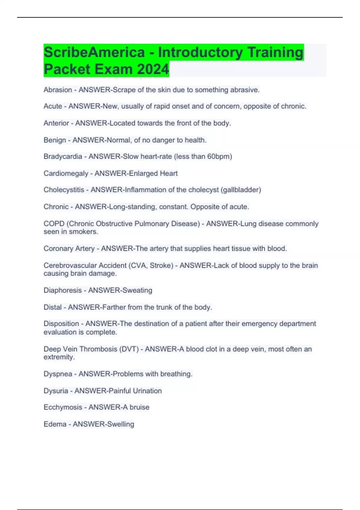 ScribeAmerica - Introductory Training Packet Exam 2024