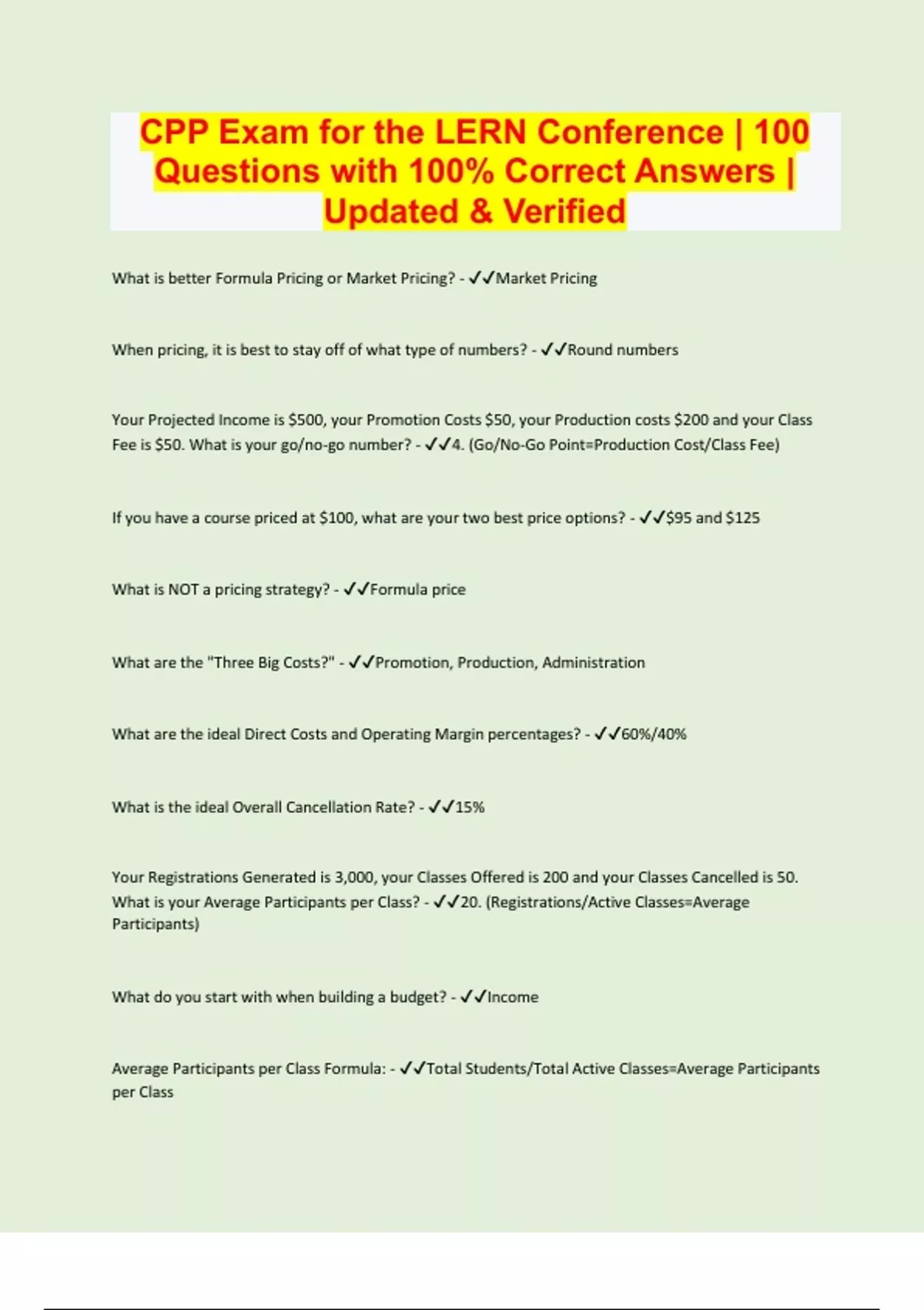 CPP Exam for the LERN Conference | 100 Questions with 100% Correct Answers | Updated & Verified