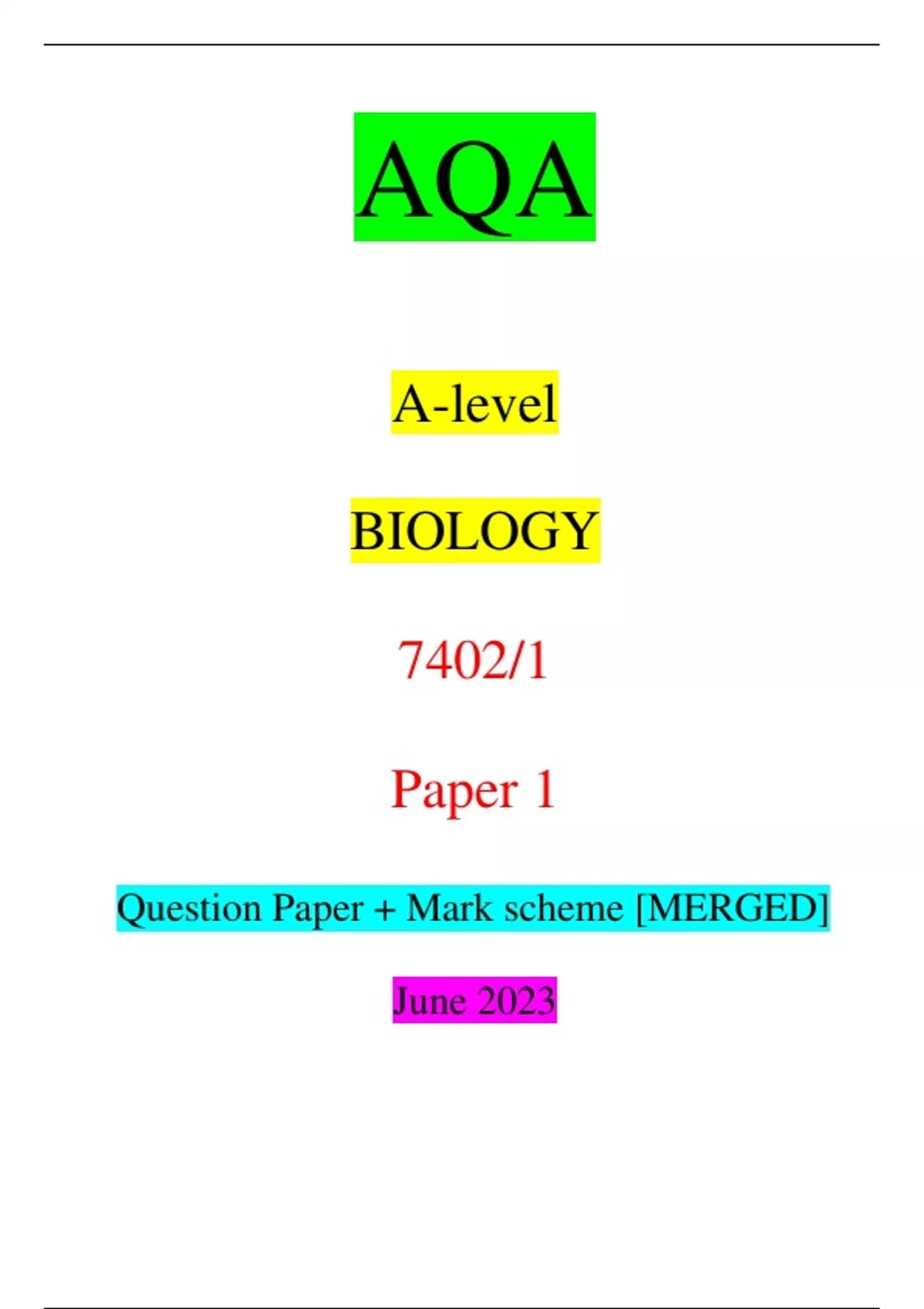 AQA A-level BIOLOGY 7402/1 Paper 1 Question Paper + Mark scheme [MERGED] June 2023