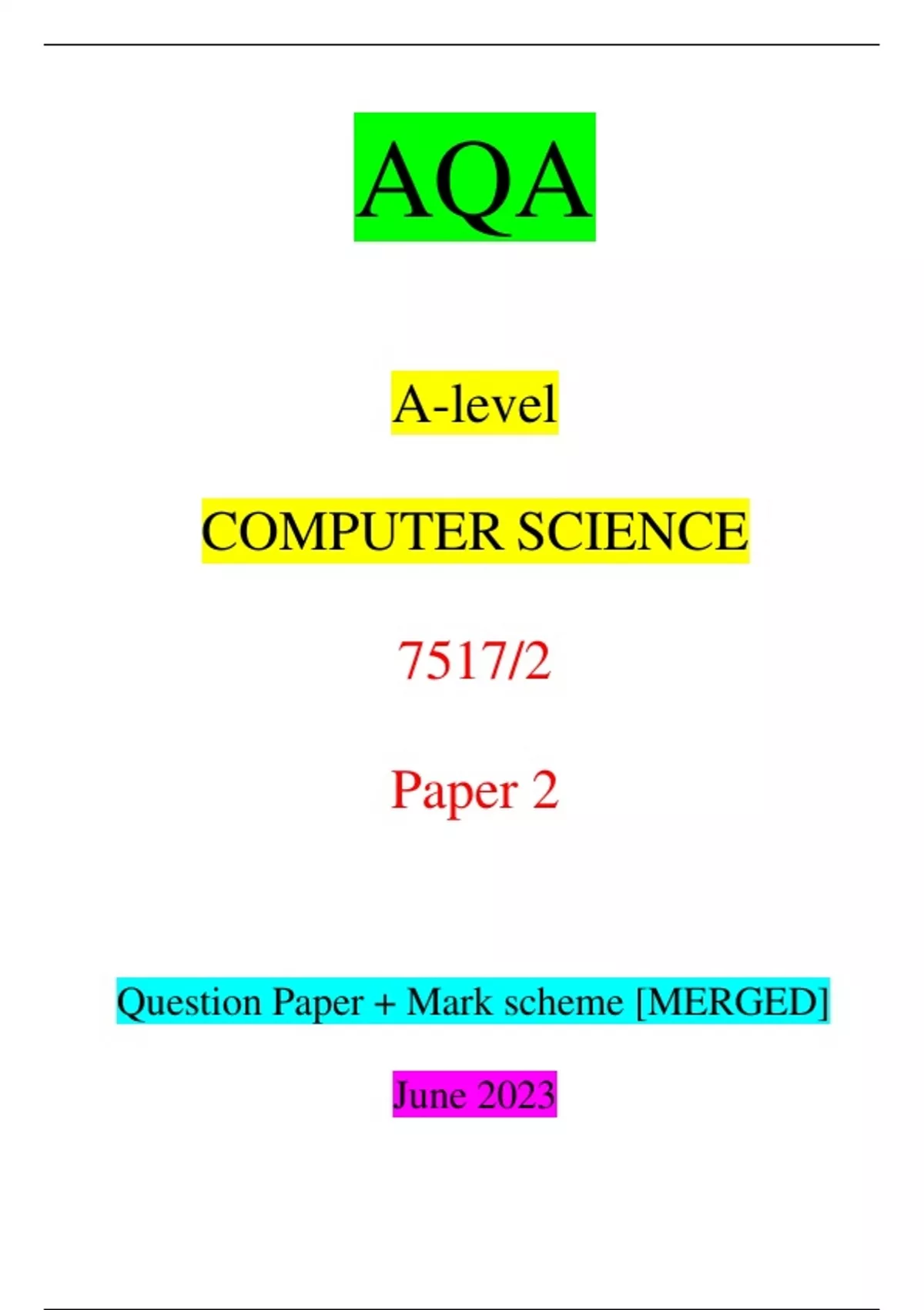 AQA A-level COMPUTER SCIENCE 7517/2 Paper 2 Question Paper + Mark scheme [MERGED] June 2023