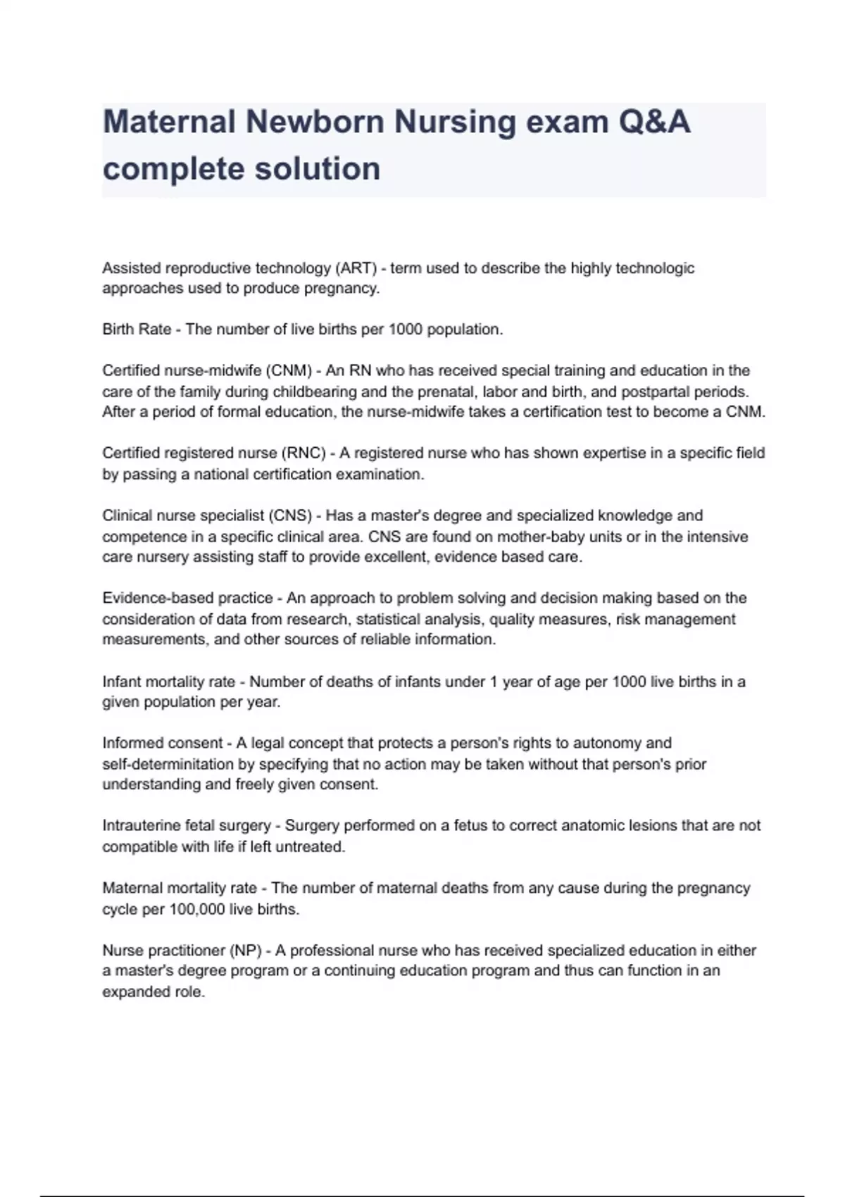 - Maternal Newborn Nursing ex Q&A complete solutio