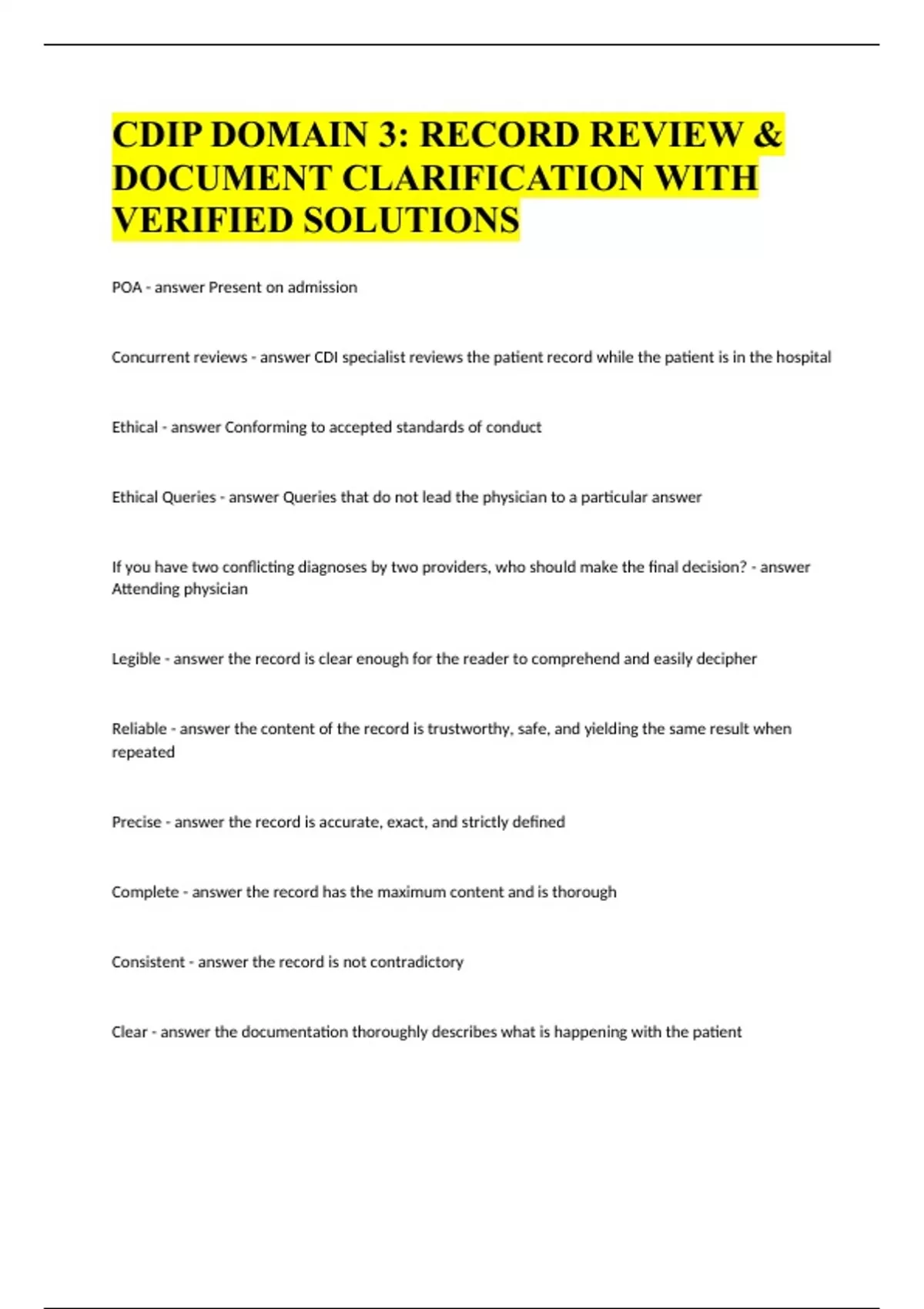 CDIP DOMAIN 3 RECORD REVIEW & DOCUMENT CLARIFICATION WITH VERIFIED SOLUTIONS