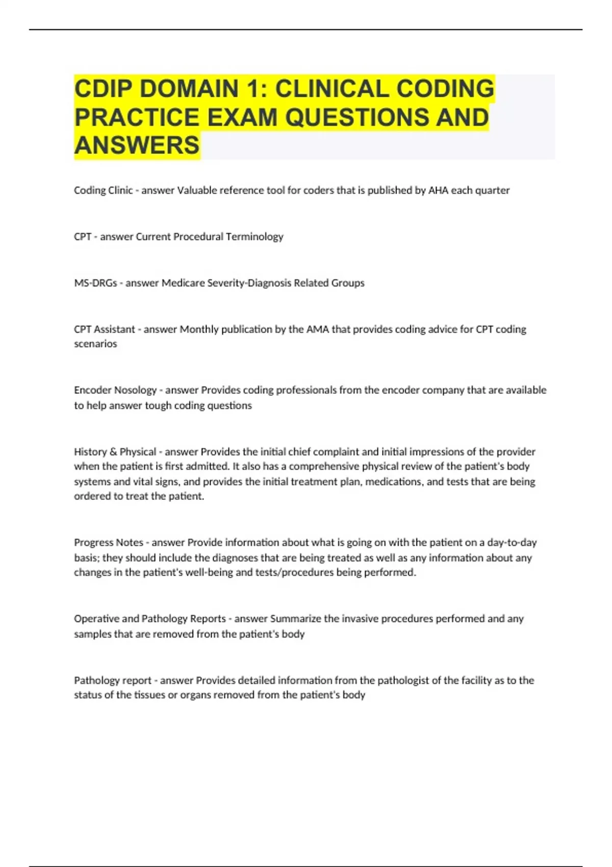 CDIP DOMAIN 1 CLINICAL CODING PRACTICE EXAM QUESTIONS AND ANSWERS 2024.