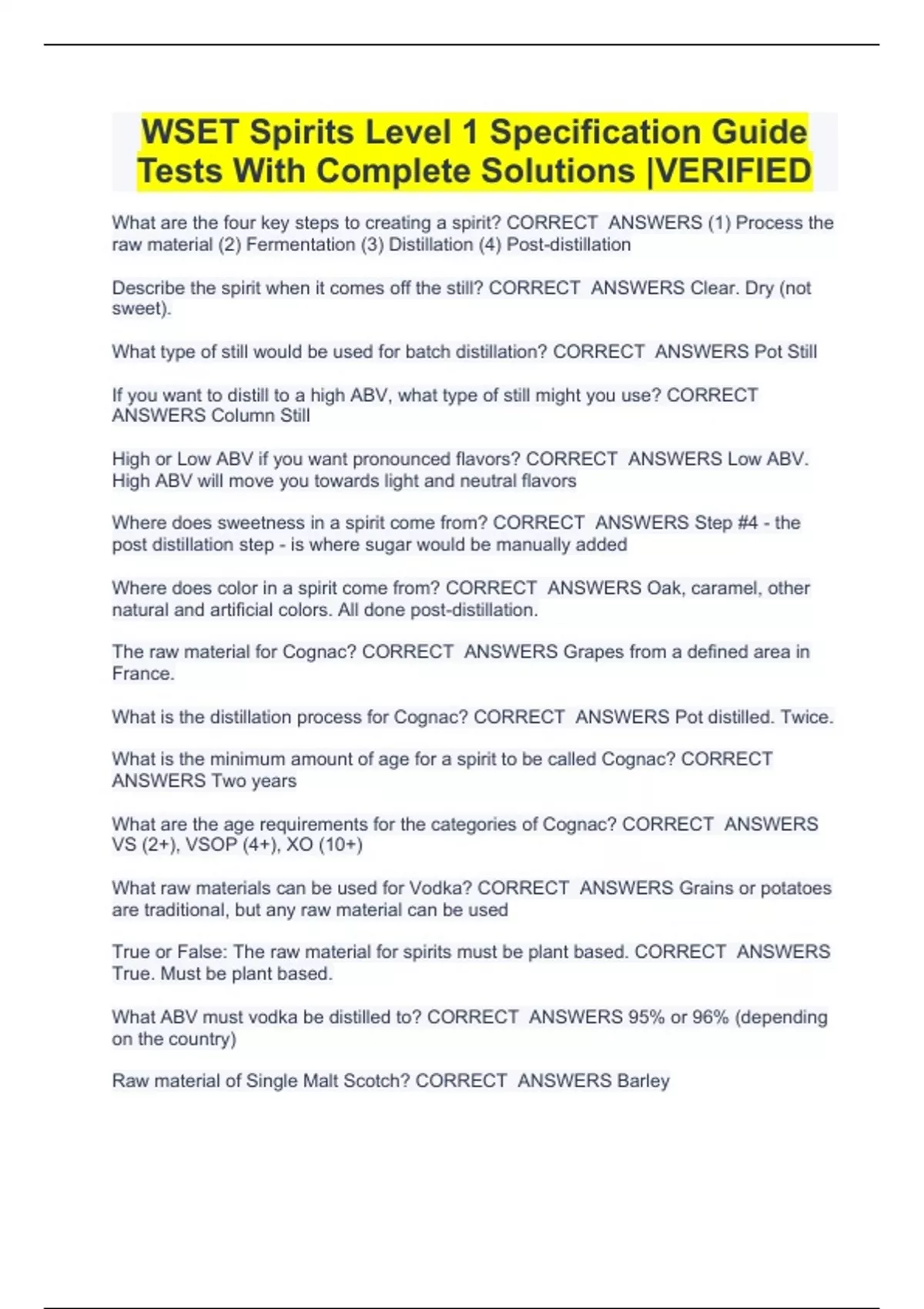 WSET Spirits Level 1 Specification Guide Tests With Complete Solutions