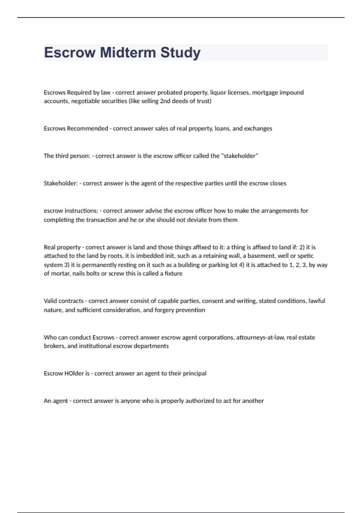 Escrow Midterm Study Question and answers correctly solved 2023/2024