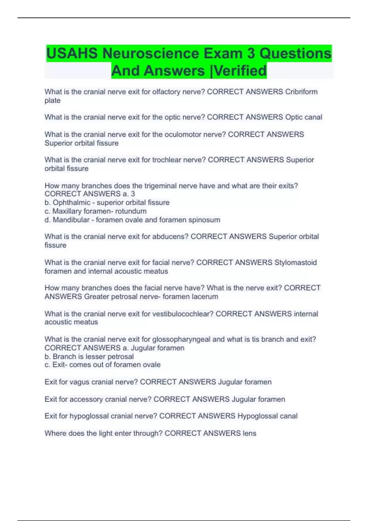 usahs neuroscience exam 3 questions and answers
