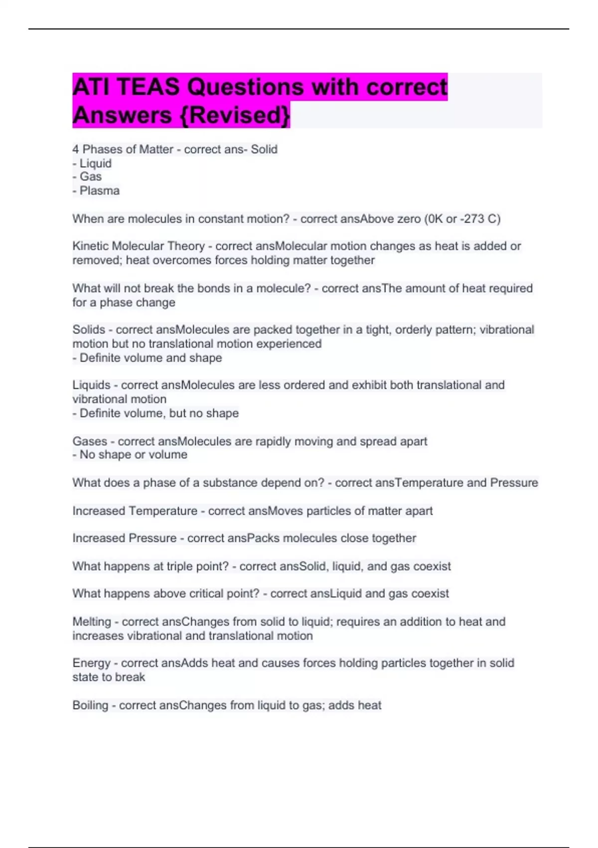 ati teas questions with correct answers