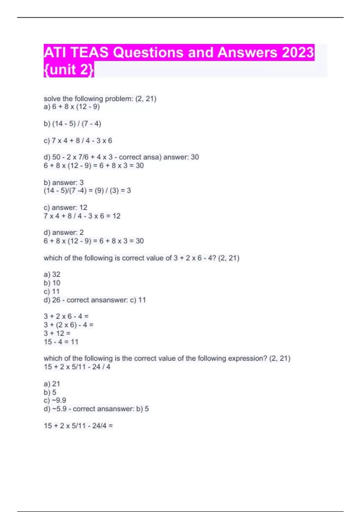 ATI TEAS Questions and Answers 2023