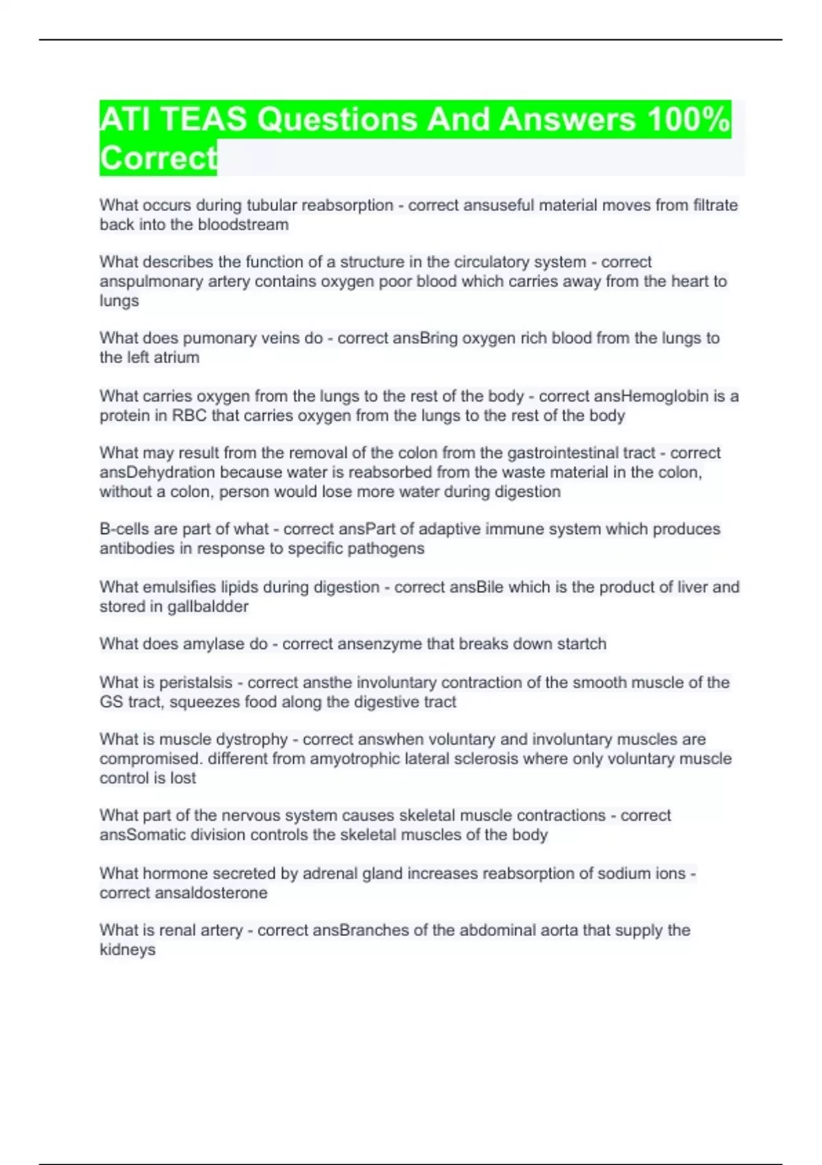 ATI TEAS Questions And Answers 100% correct 2023