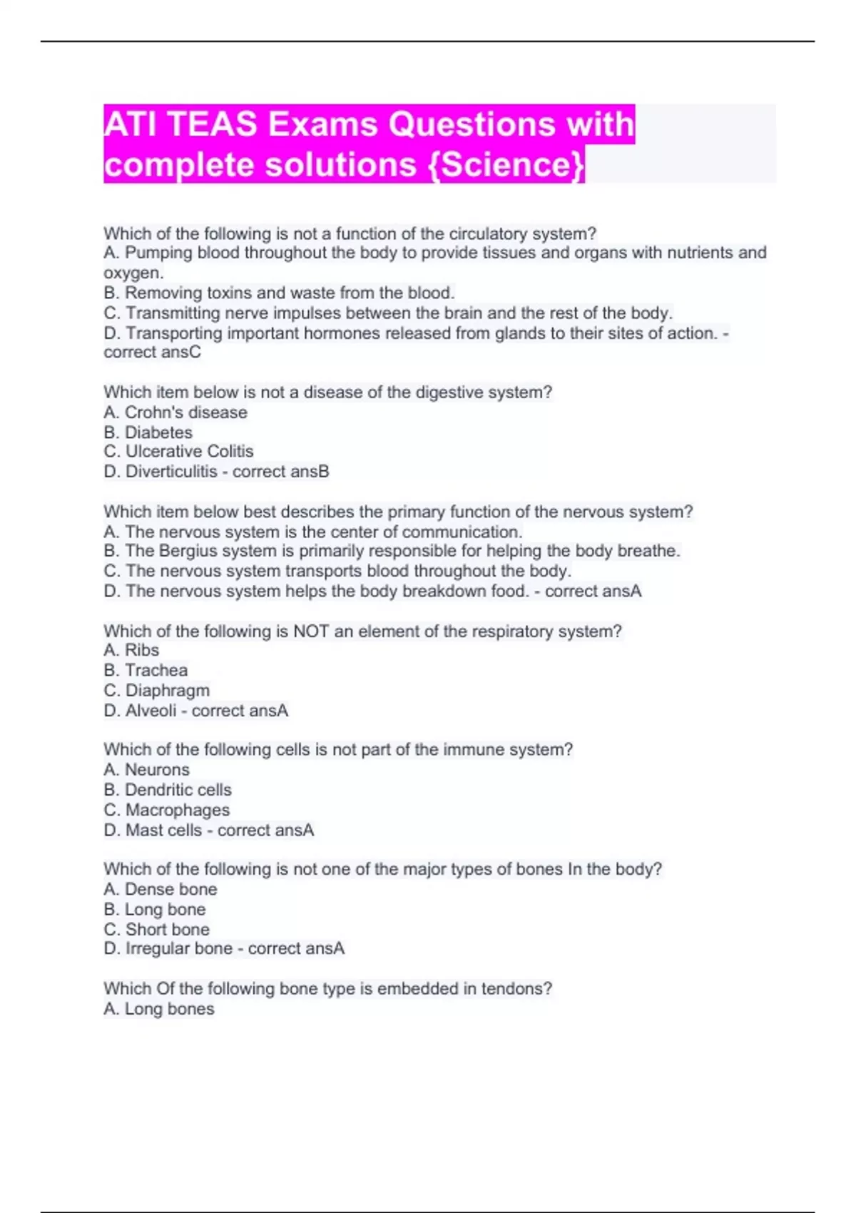 ati teas exams questions with complete solutions 2