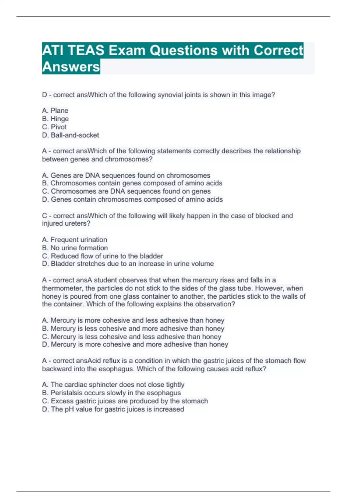 ati teas exam questions with correct answers 2023