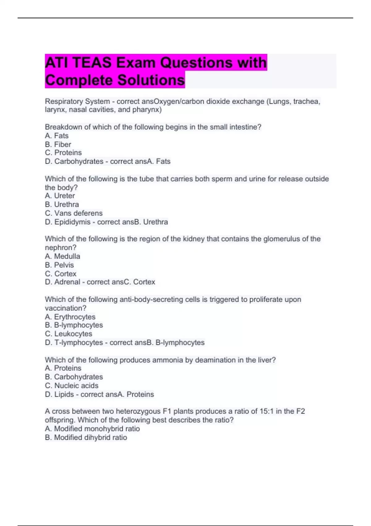 ATI TEAS Exam Questions with Complete Solutions 2023