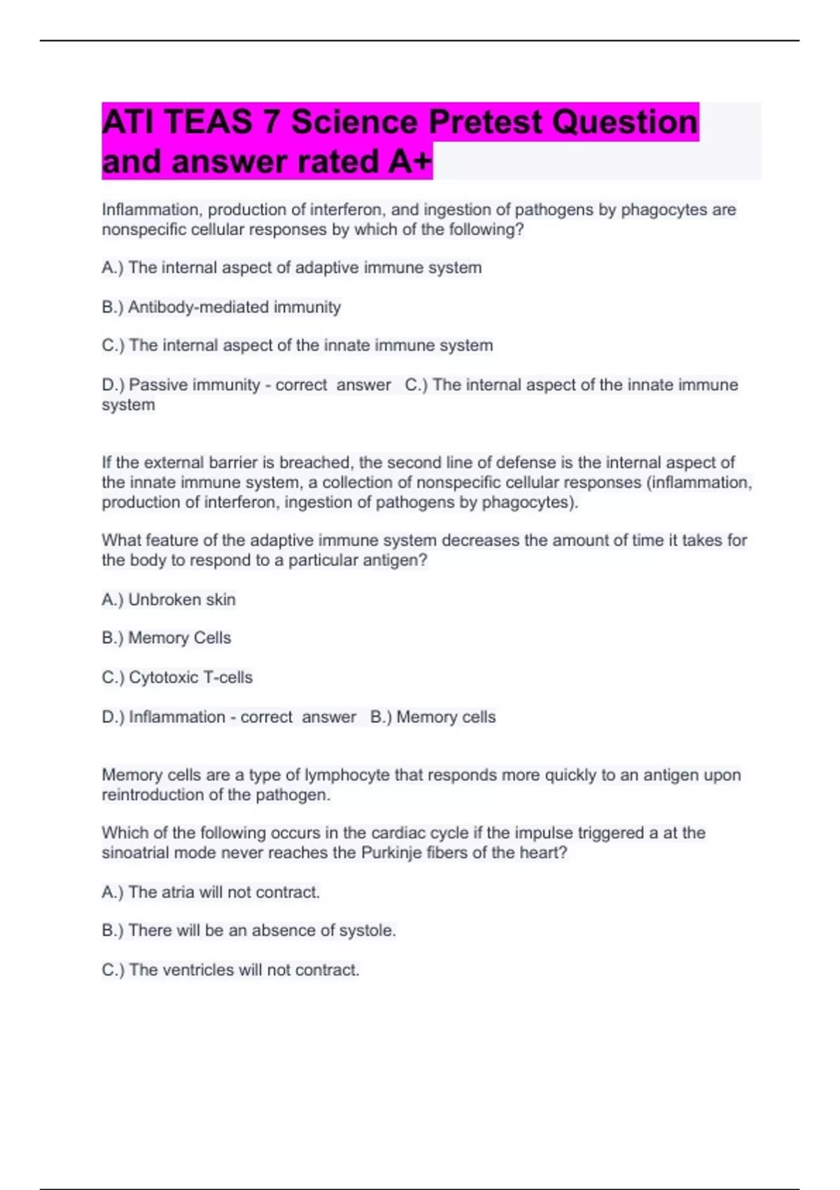 ATI TEAS 7 Science Pretest Question and answer rated A+ 2023