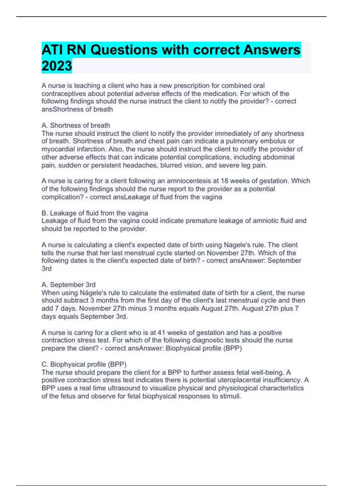 ATI RN Questions with correct Answers 2023.